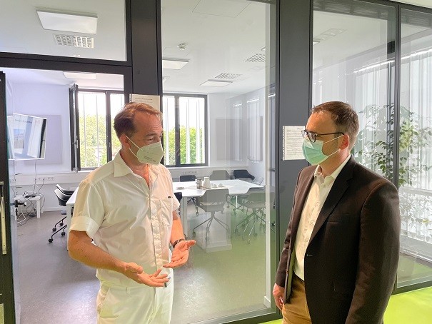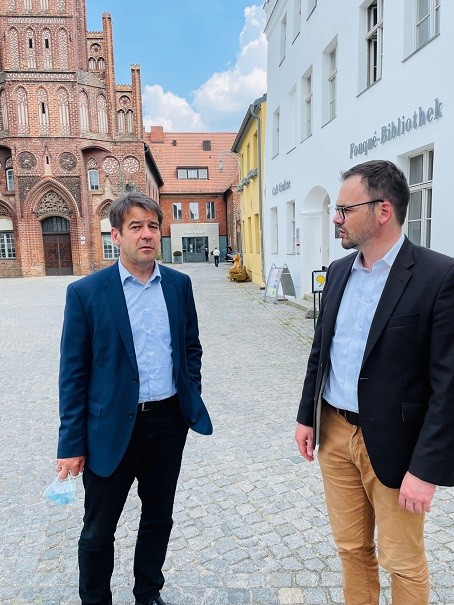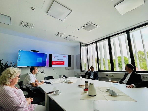 Oberbürgermeister Steffen Scheller begrüßte den CDU Landtagsfraktionschef Dr. Jan Redmann. Bei den Gesprächen mit dem MHB Hochschulkoordinator Prof. Lüth und Gabriele Wolter, Geschäftsführerin des Städtischen Klinikums Brandenburg GmbH, ging es um die MHB - Landesförderung sowie aktuelle Forschungsprojekte.