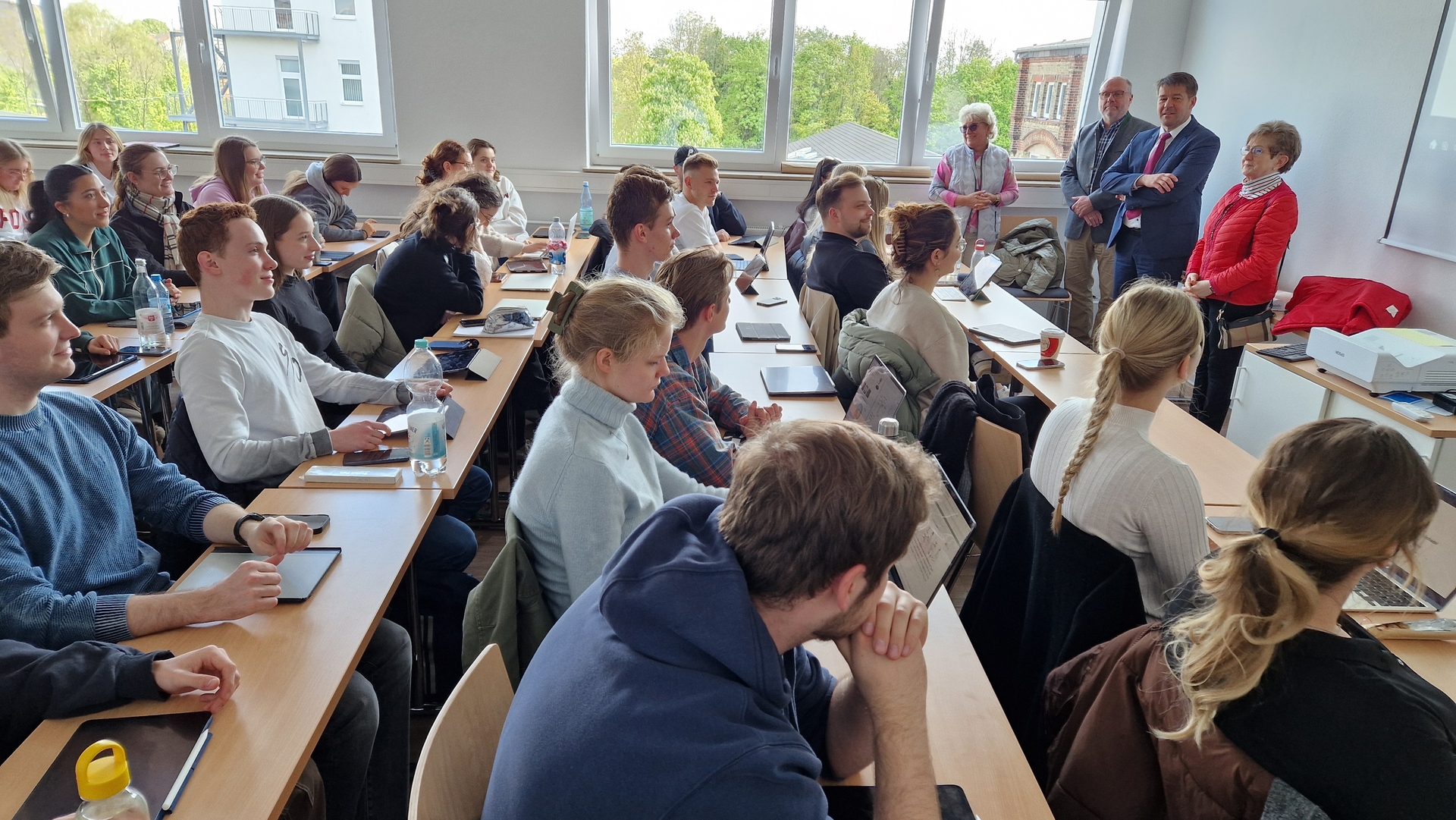Bevor Oberbürgermeister Steffen Scheller sich die anderen Lehrräume anschaute, wünschte er der den Erstsemestern