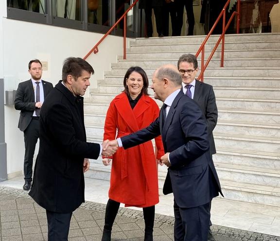 Im Rahmen eines Besuches im Bundesamt für Auswärtige Angelegenheiten in der Kirchhofstraße konnte Oberbürgermeister Steffen Scheller am Dienstag, 17. Januar 2023, Bundeskanzler Olaf Scholz und Bundesaußenministerin Annalena Baerbock begrüßen.