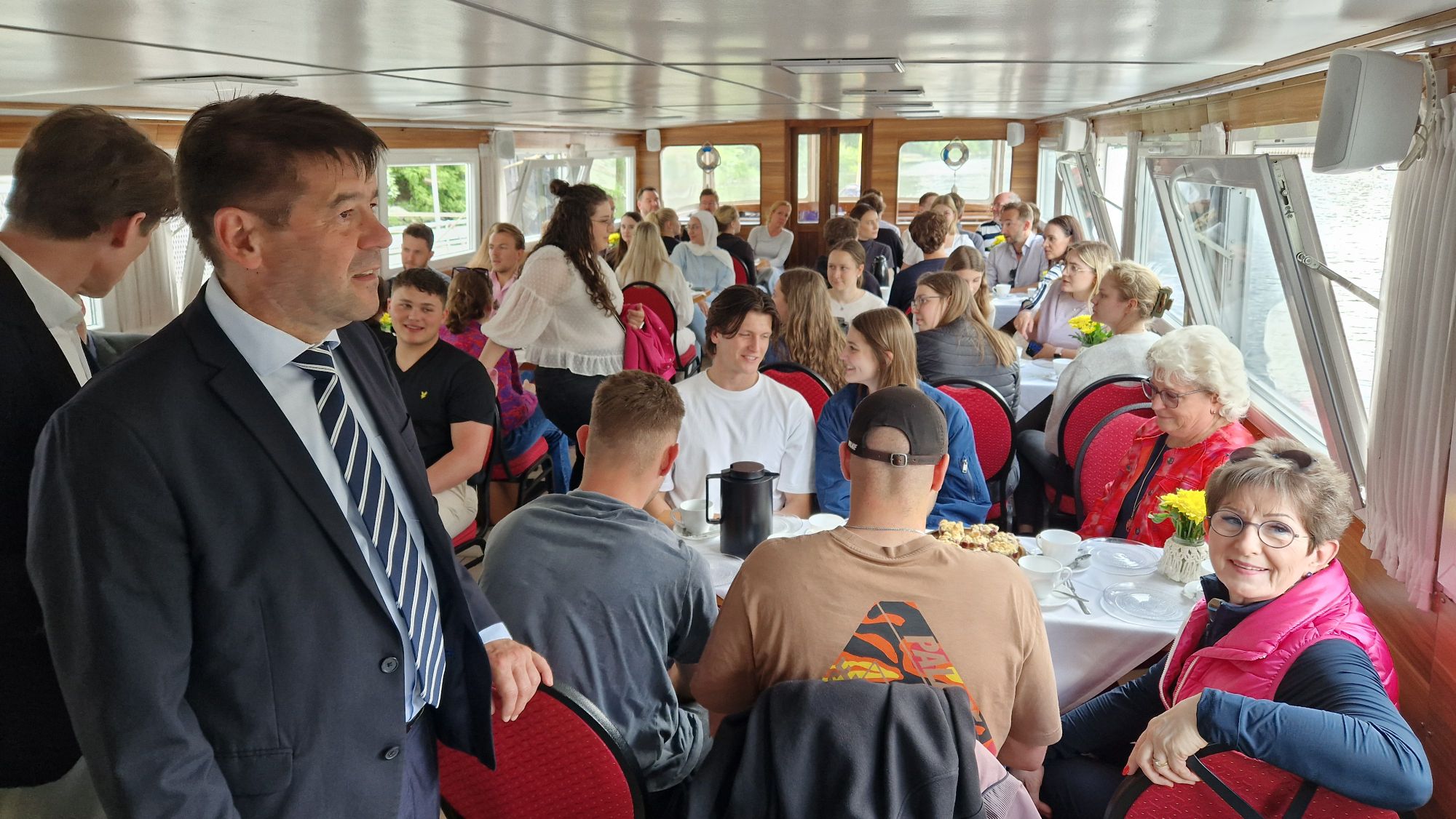 Im April 2024 hatte Oberbürgermeister Steffen Scheller die ersten Zahnmedizin-Studierenden der Medizinischen Hochschule Brandenburg in ihrem Übergangsquartier in der Geschwister-Scholl-Straße besucht und versprochen, im Mai mit ihnen in See zu stechen.