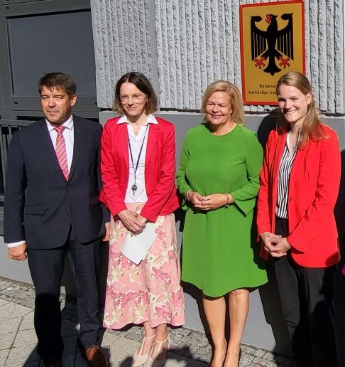 Oberbürgermeister Steffen Scheller begrüßte am Dienstag, 15. August 2023, die Bundesministerin des Innern und für Heimat (BMI), Nancy Faeser, im Rahmen eines Besuches im Bundesamt für Auswärtige Angelegenheiten (BfAA) am Standort Brandenburg an der Havel.