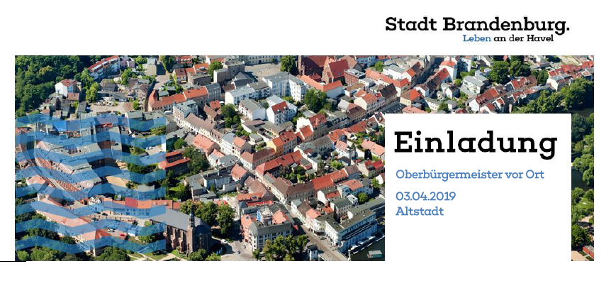 Oberbürgermeister Steffen Scheller lädt alle interessierten Bürgerinnen und Bürger der Altstadt am Mittwoch, dem 03.04.2019 um 18:00 Uhr in den Rolandsaal des Altstädtischen Rathauses, Atstädtischer Markt 10, zur Veranstaltungsreihe „Oberbürgermeister vor Ort“ ein, um mit Ihnen sowie mit Fachkollegen ins Gespräch zu kommen.