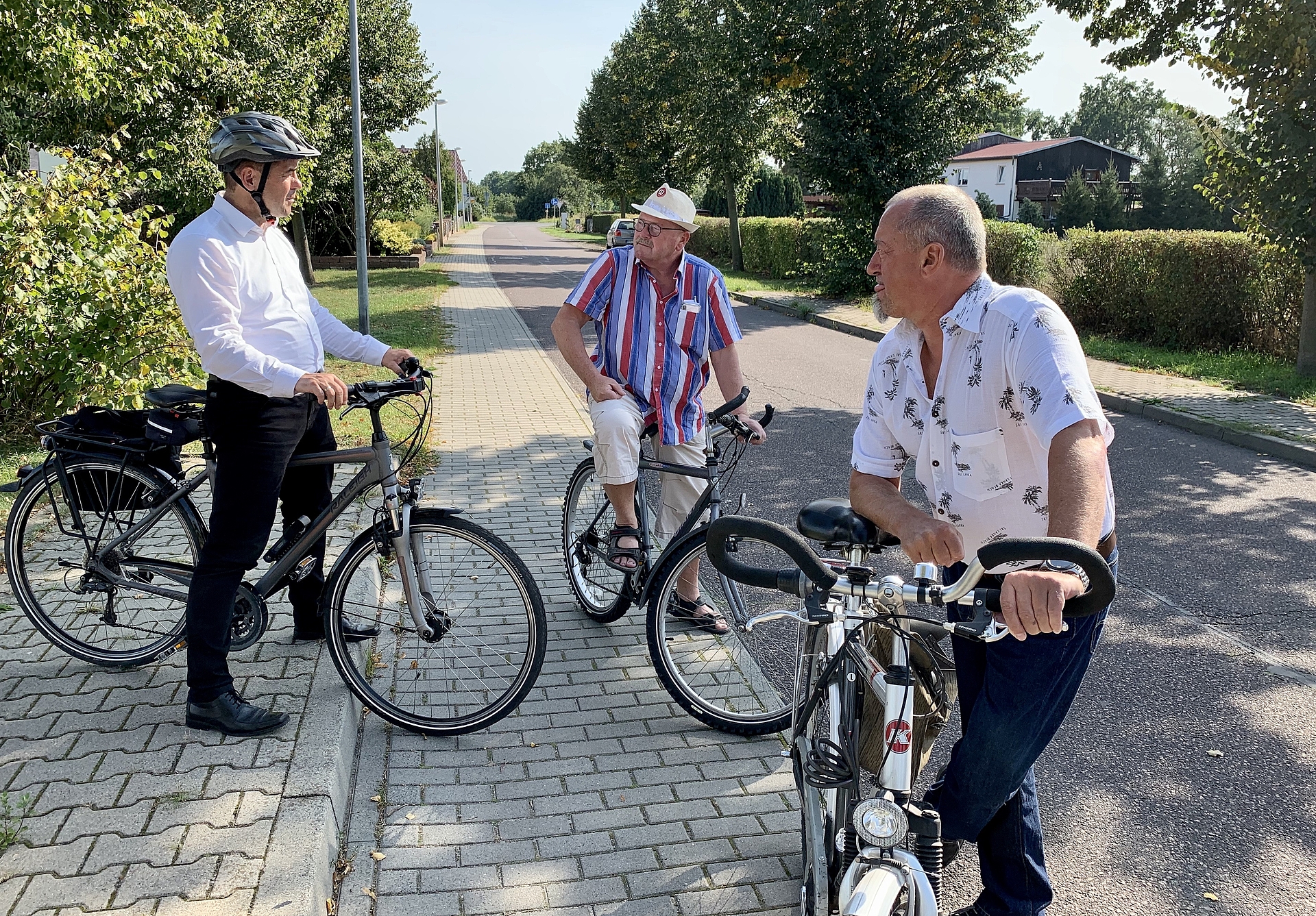In der Reihe „Oberbürgermeister vor Ort“ empfingen am Montag, 14.09.2020, der Wuster Ortsvorsteher Bodo Kaßau und sein Stellvertreter Matthias Foest Oberbürgermeister Steffen Scheller im Brandenburger Ortsteil Wust, um über die Entwicklung des Ortsteils und über Sorgen und Probleme zu sprechen. Nach einer kurzen Radtour durch Wust trafen sich Vertreter des Ortsbeirates, der Volkssolidarität, des Wuster Kulturvereins und der Freiwilligen Feuerwehr Wust in der neuen Begegnungsstätte zur Gesprächsrunde mit dem Oberbürgermeister. Großes Interesse bestand an der geplanten Überführung des Bahnübergangs Wust. Steffen Scheller verwies auf die Mitteilung des Landesstraßenbetriebes zur jetzt einseitg geplanten Radwegführung und zum geplanten Baubeginn im Frühjahr 2022.