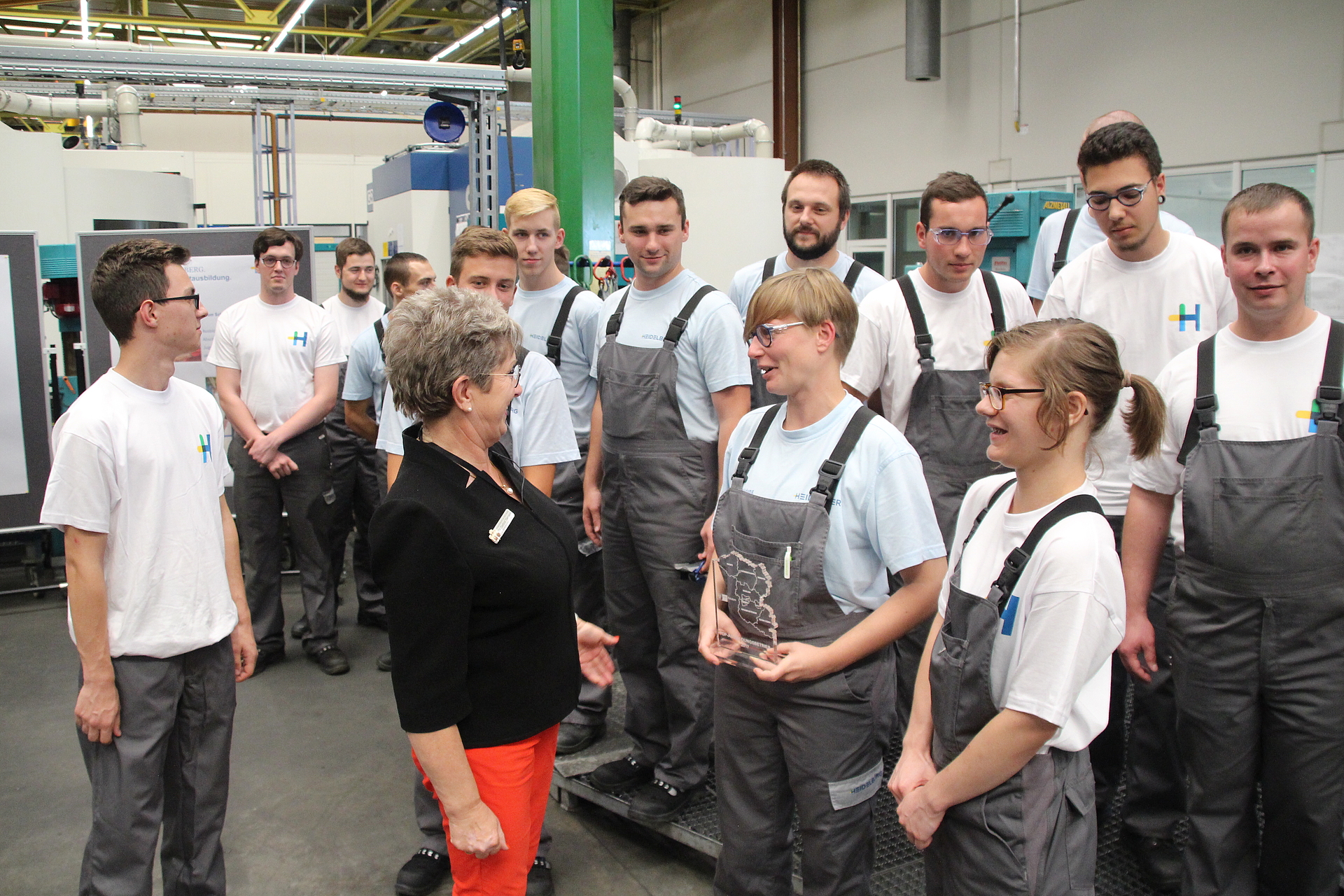 Oberbürgermeisterin Dr. Dietlind Tiemann gratulierte der Geschäftsführung und dankte dem Ausbildungsleiter Rainer Schmidt: „Wir sind als Stadt froh darüber, dass die Entscheidung auszubilden nie in Frage gestellt wurde. Die Ausbildung bei der Heidelberger Druckmaschinen AG ist beispielgebend. Die Auszubildenden machen nicht nur durch ihr fundiertes Fachwissen und gute Berufsabschlüsse von sich Reden, sondern engagieren sich in verschiedenen ehrenamtlichen Projekten oder bei „Jugend forscht“. Bei Ihnen, sehr geehrter Herr Schmidt, wird der Vermittlung von Sozialkompetenz große Bedeutung beigemessen.“