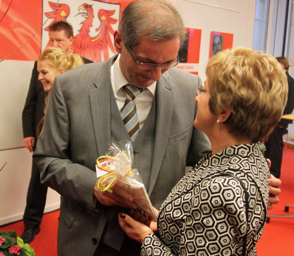 Oberbürgermeisterin Dr. Dietllind Tiemann hat am Mittwoch, 15.01.2014, Matthias Platzeck, Ministerpräsident a. D., auf einem Empfang im Landtag in Potsdam zu dessen 60. Geburtstag gratuliert. Als kleines Geschenk überreichte sie ihm ein Buch von Victor von Bülow.