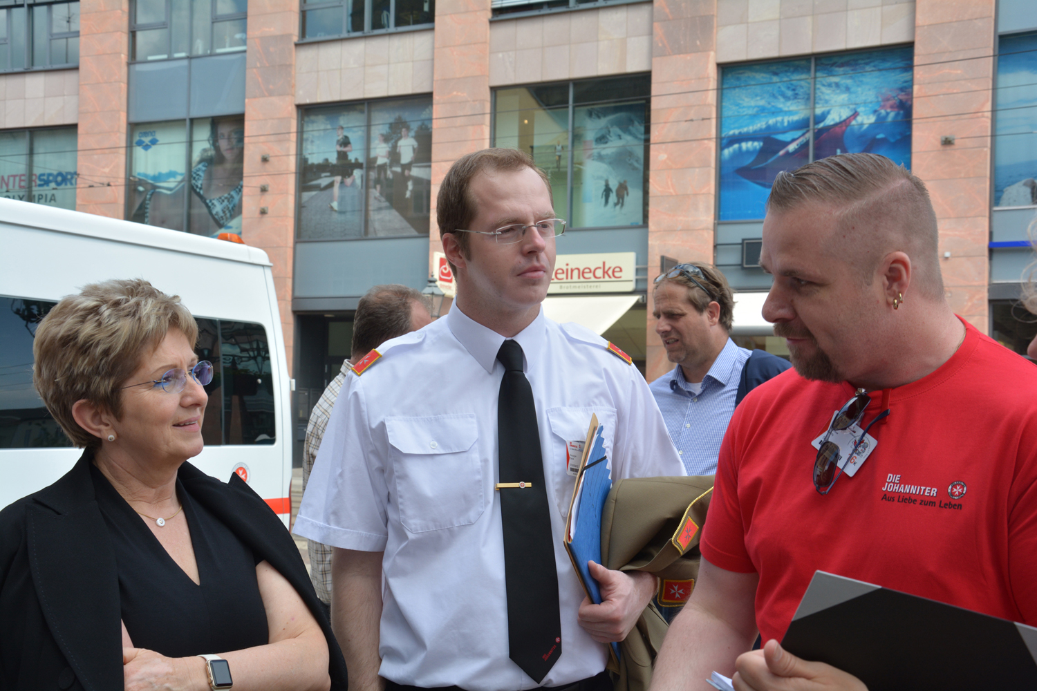 In ihrem Grußwort lobte die Oberbürgermeisterin das Wirken der Johanniter auf sozialem wie medizinischem Gebiet: „Mit Ihren Leistungen und Ihrer Anteilnahme am jeweils individuellen Schicksal haben sich die Johanniter überall dort, wo sie tätig sind, große Anerkennung erworben. Aus der Wohlfahrtspflege, den sozialen Diensten und dem Rettungswesen unserer Stadt sind die Johanniter nicht mehr wegzudenken.“ Weiter sagte sie: „Was mich besonders froh und zuversichtlich stimmt, das ist die Tatsache, dass bei den Johannitern offensichtlich sehr viele junge Menschen aktiv sind. Es ist immer gut, wenn Organisationen und Vereine attraktive Angebote für Heranwachsende unterbreiten. Denn wir brauchen Menschen, die sich für ihr Umfeld einsetzen; wir brauchen Menschen, die es nicht anderen überlassen, etwas für die Lebensqualität am Ort zu tun. Ehrenamtlich Tätige sind unverzichtbar für ein funktionierendes Miteinander, ehrenamtlich Tätige sind gute Nachbarn im besten Sinne des Wortes.“