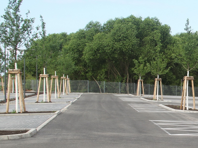 Auf einem Areal von 5.800 m² wurden Stellflächen für 180 PKW und 17 Mopeds zur zunächst kostenlosen Nutzung hergerichtet. Auf der angrenzenden Fläche von 2.250 m² sind zum zweistündigen Kurzzeitparken Stellflächen für 35 PKW entstanden. Außerdem wurden Stellflächen für 17 Taxen und ein Ein- und Ausstiegsbereich geschaffen, der durch eine in der Höhe abgestufte Metallkonstruktion überdacht wird und nach Abschluss der dort noch laufenden Arbeiten einen barrierefreien Zugang zum Bahnhofsvorplatz gewährleisten wird. 43 moderne Leuchten werden künftig für die Beleuchtung auf dem P+R-Parkplatz sorgen und zur Begrünung des Umfeldes wurden mehr als fünfzig Ulmen und weitere Stauden gepflanzt.