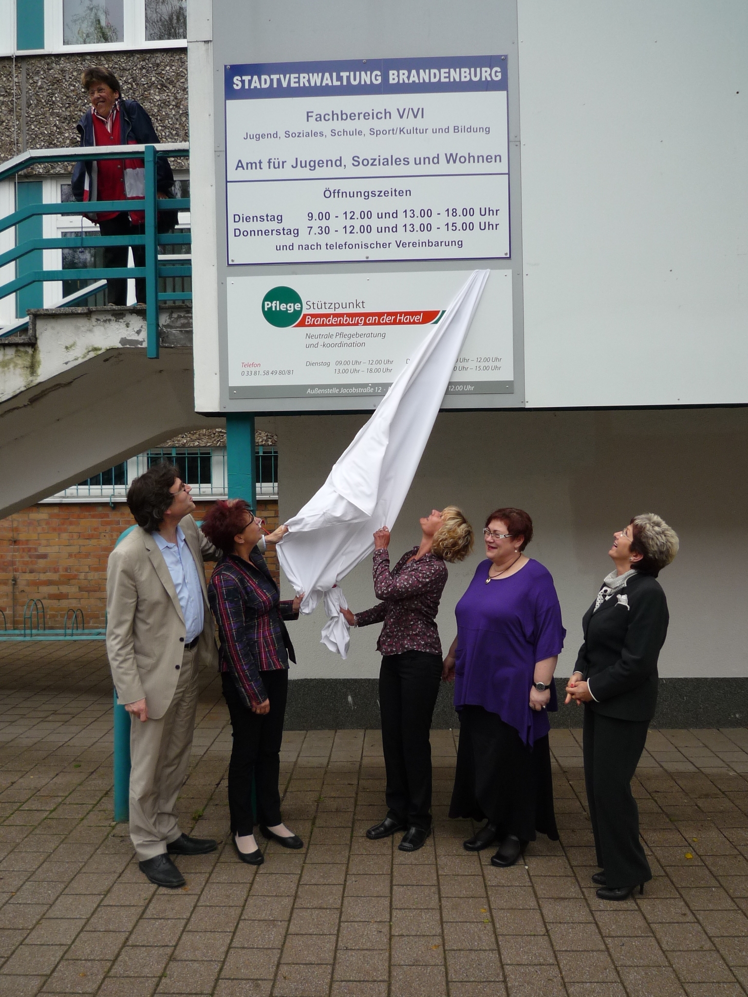 Als neues, umfassendes Hilfeangebot für Pflegebedürftige und deren Angehörige hat in Brandenburg an der Havel ein weiterer Pflegestützpunkt im Land seine Arbeit aufgenommen. Bei dieser Einrichtung, die landesweit die 15. Beratungsstelle ihrer Art ist, kooperiert die AOK Berlin-Brandenburg mit der Stadtverwaltung. Mit Staatssekretär Prof. Dr. Wolfgang Schroeder vom zuständigen Sozialministerium haben Gerlinde König, stellvertretende Vorstandsvorsitzende der AOK Berlin-Brandenburg, und die Oberbürgermeisterin der Havelstadt, Dr. Dietlind Tiemann, die Beratungsstelle am Montag, 31.05.2010, offiziell eröffnet.