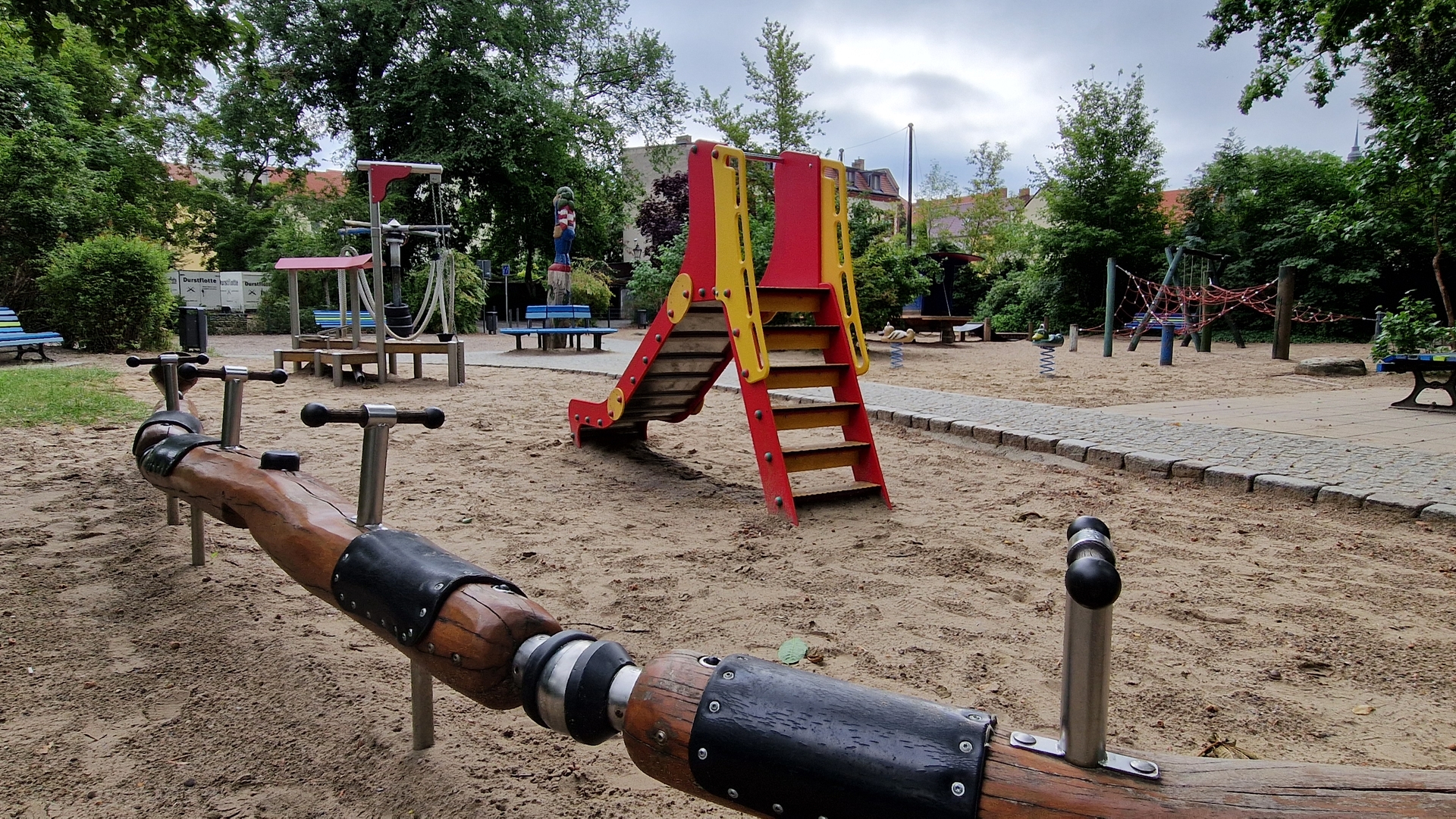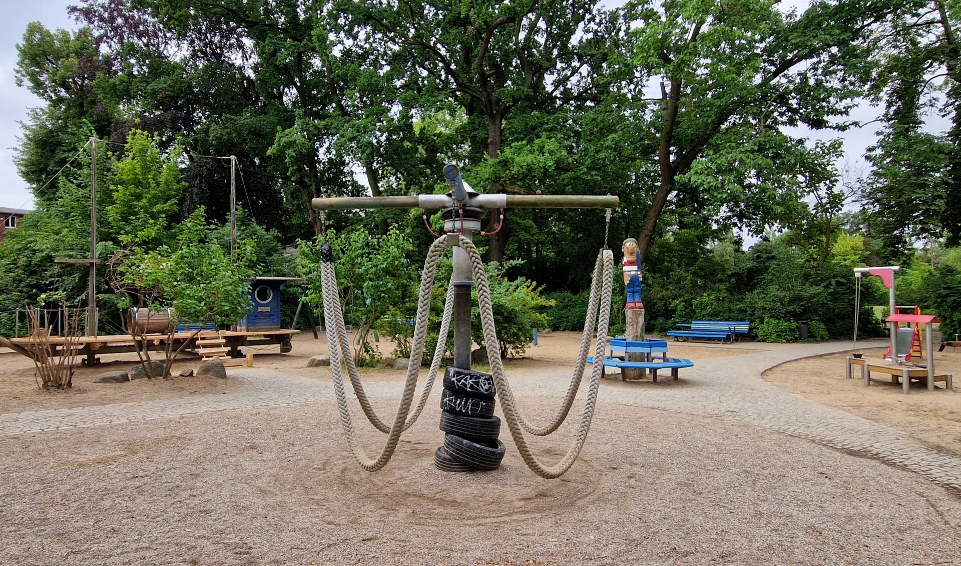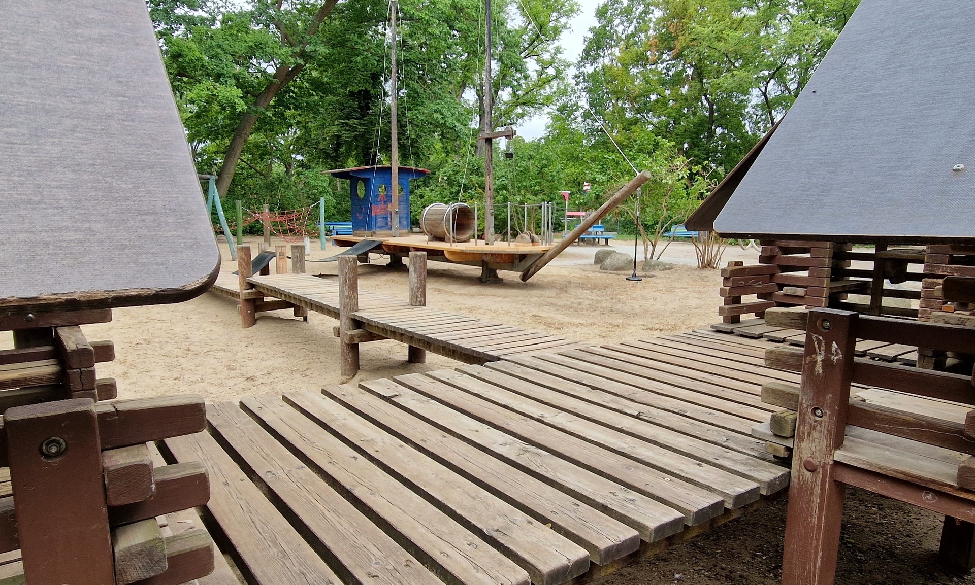 Auf dem Piratenspielplatz am Heinrich-Heine-Ufer kann wieder gespielt werden. Die Reparatur- und Aufräumarbeiten, die die Stürme der vorletzten Woche heraufbeschworen hatten, sind erledigt. Drei Bäume waren umgefallen und große Äste herabgestürzt, so dass eine Bank und ein Tisch sowie einige Zaunfelder beschädigt worden waren. Glücklicherweise waren keine Spielgeräte betroffen – vor allem nicht das frisch sanierte Piratenschiff. Doch gesperrt werden musste der gesamte Bereich vorübergehend, um sicher aufräumen zu können.