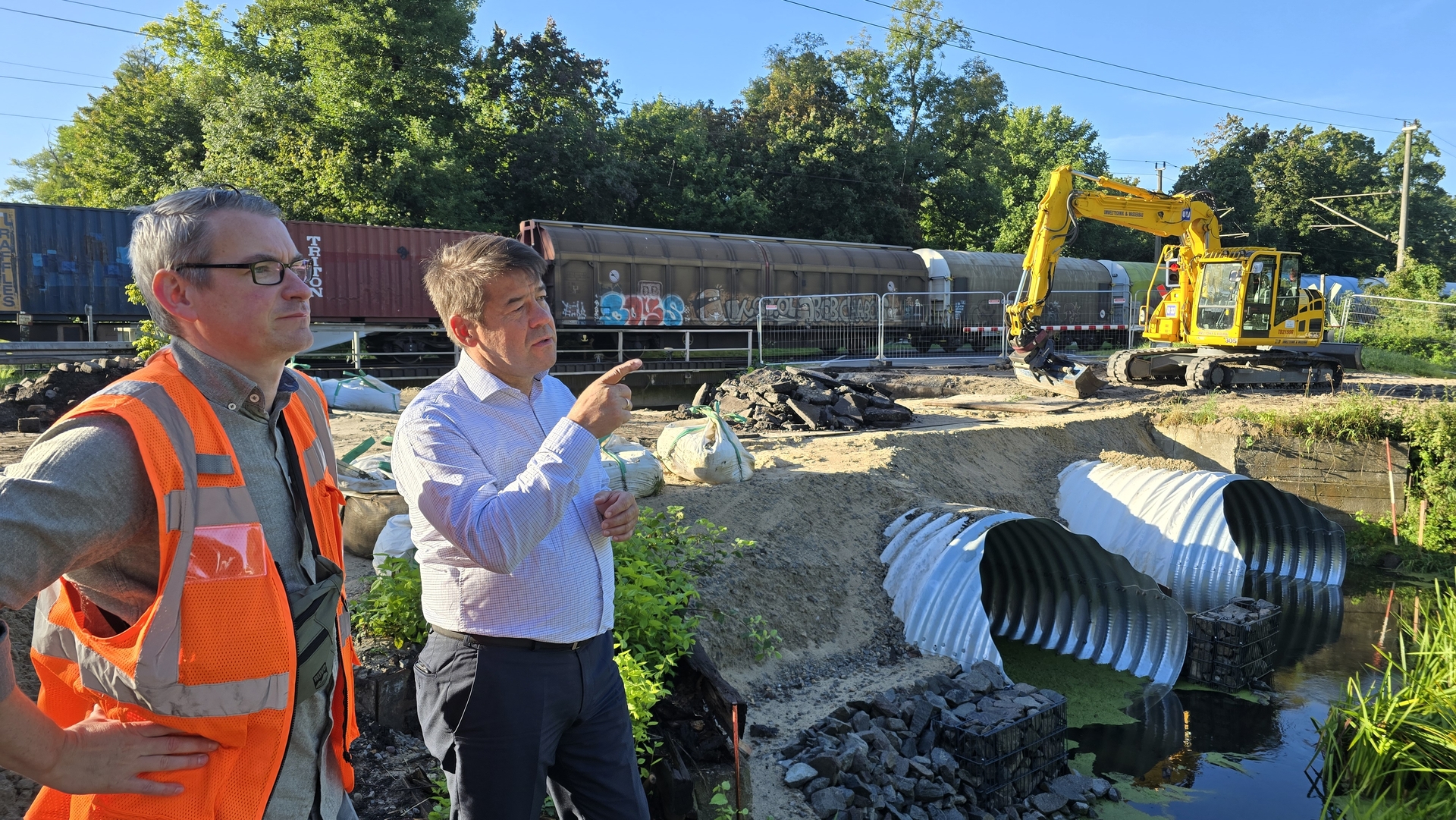 denkt Tiefbauamtsleiter Christian Fuß und ist, trotzdem das Flüsschen munter plätschert, mit dem Baufortschritt vollauf zufrieden.