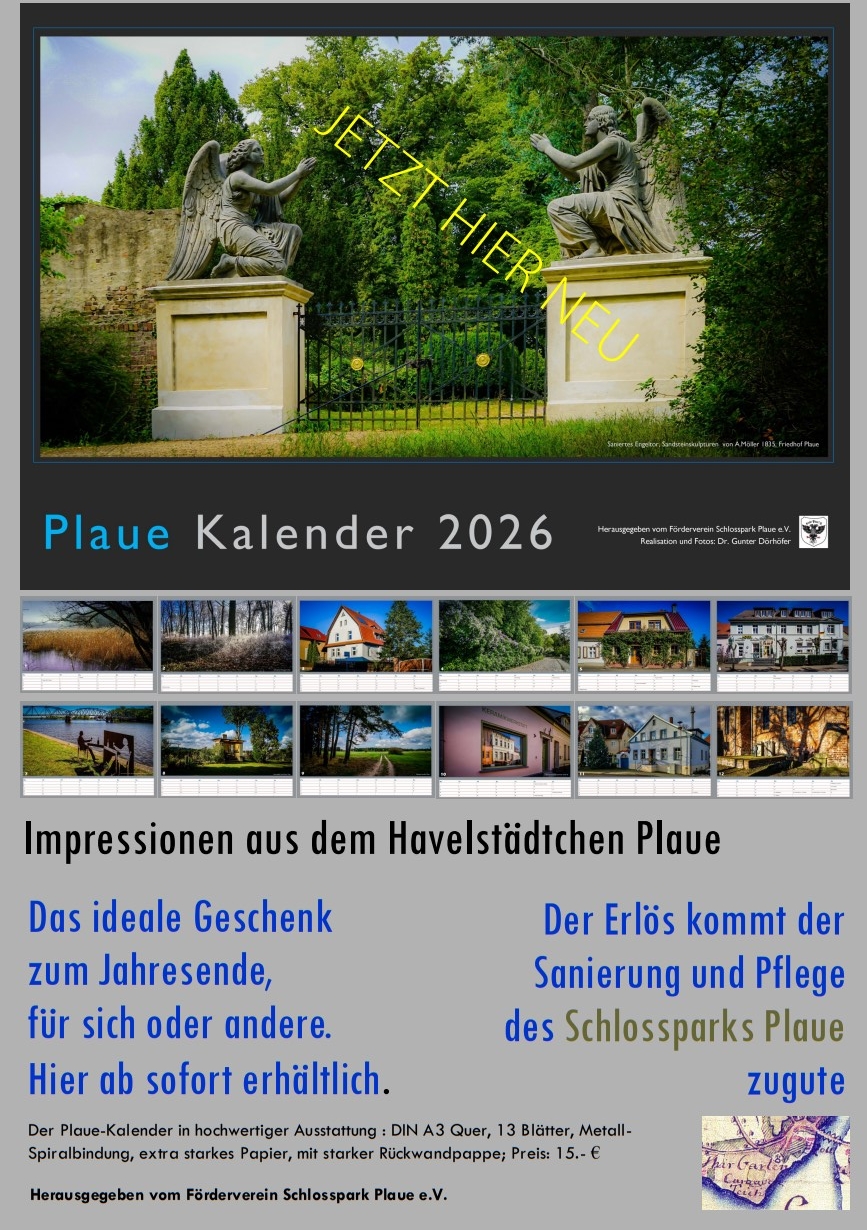 Der Förderverein Schlosspark Plaue e.V. wird am Sonntag, 7. September 2025, um 11:00 Uhr zwei strahlende Engel feierlich der Öffentlichkeit übergeben.