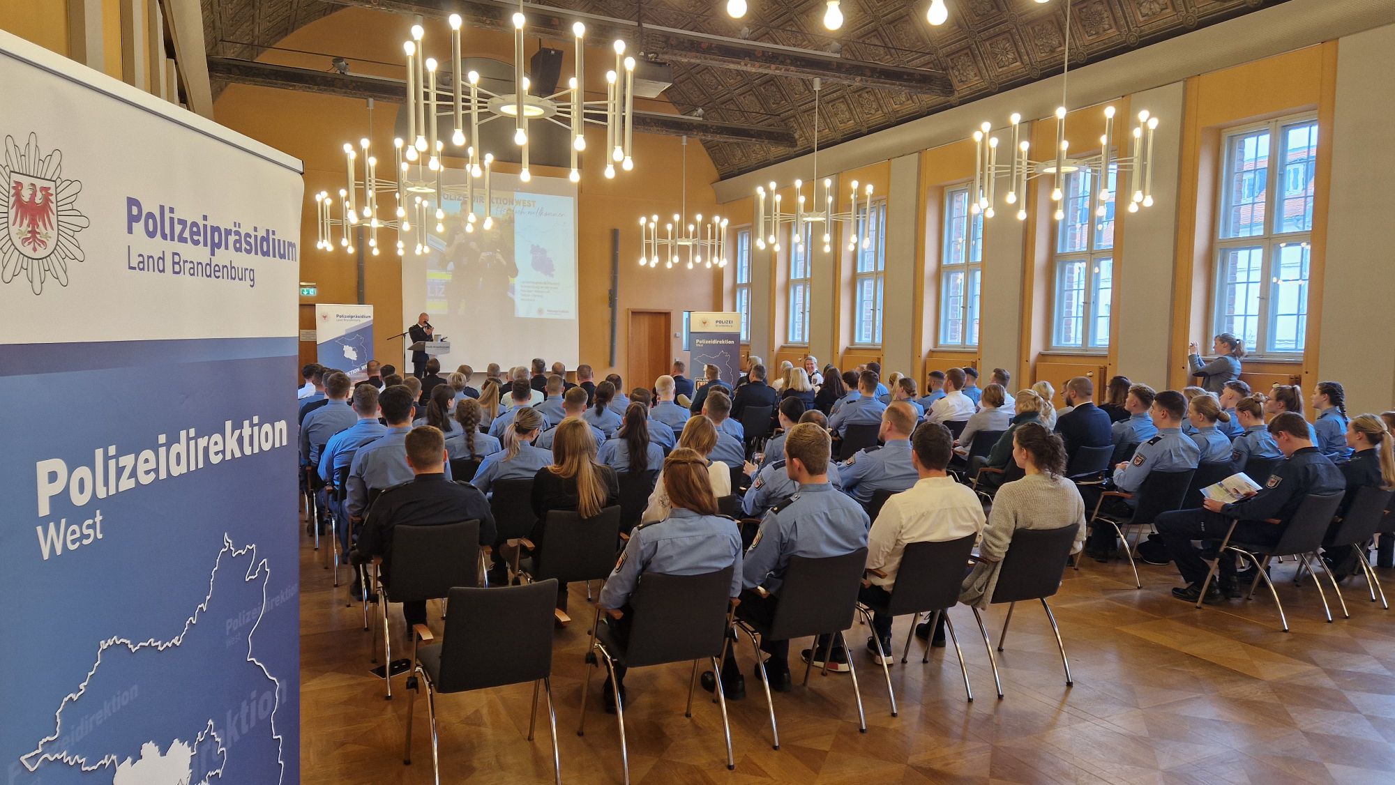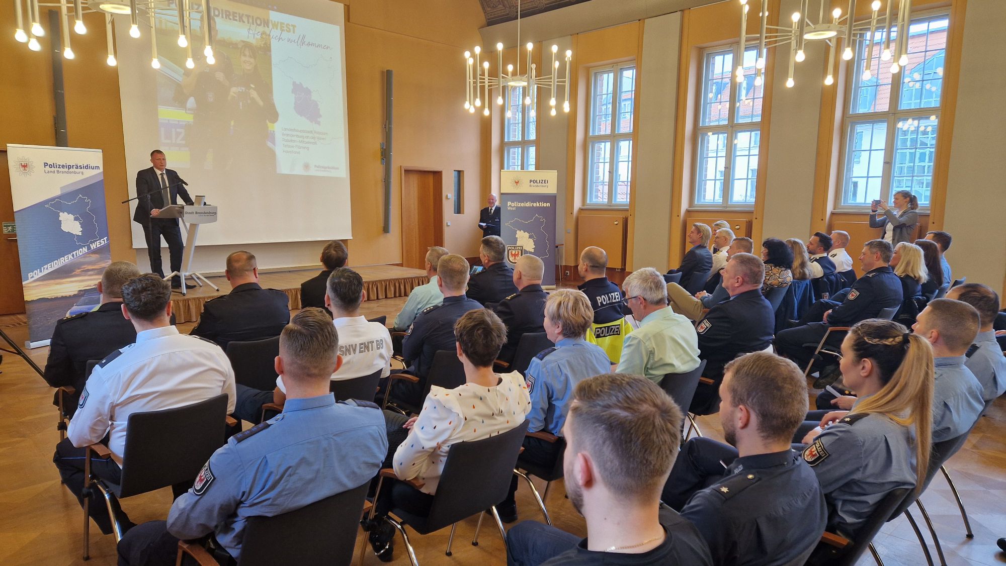 Die Polizeidirektion West führt halbjährlich Begrüßungsveranstaltungen der neu zugeordneten Polizeibeamten durch – gern im Rolandsaal des Brandenburger Rathauses.