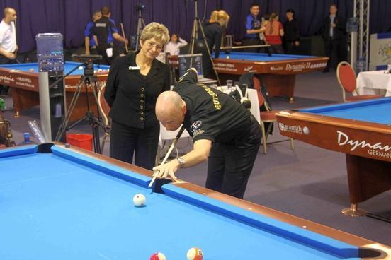 Mit dem Eröffnungsanstoß durch Oberbürgermeisterin Dr. Dietlind Tiemann und Staatssekretär Burkhard Jungkamp erklärte der Präsidenten der Europäischen Pocket Billiard Federation (EPBF) Gre Leenders die Europameisterschaften im Poll-Billard für eröffnet.