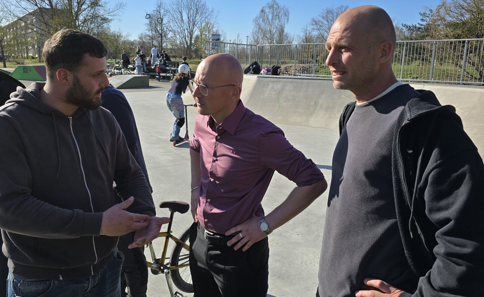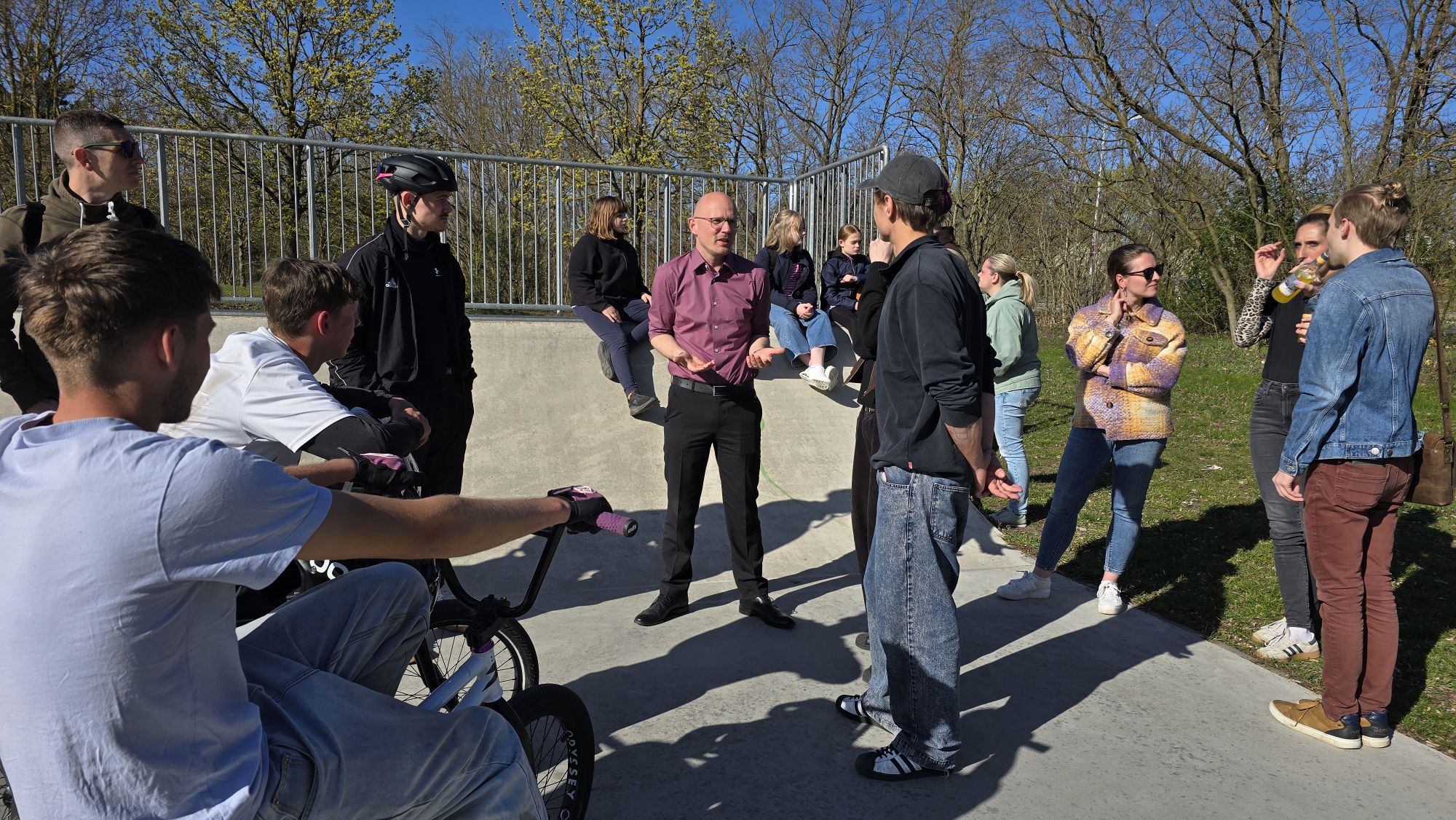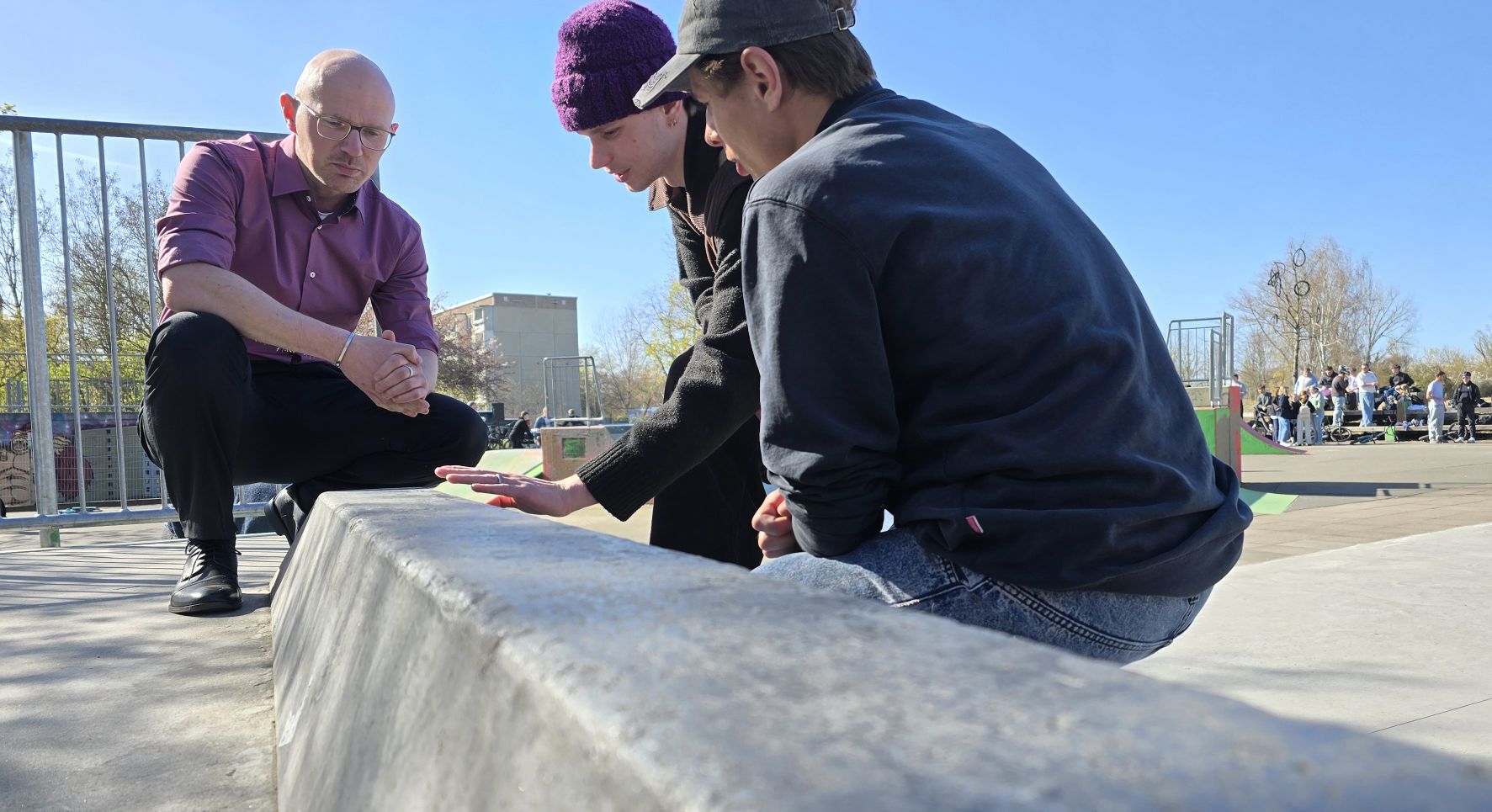 Die erste Kinder- und Jugendsprechstunde mit Oberbürgermeister Daniel Keip fand bei strahlendem Sonnenschein im Skatepark in Hohenstücken statt.