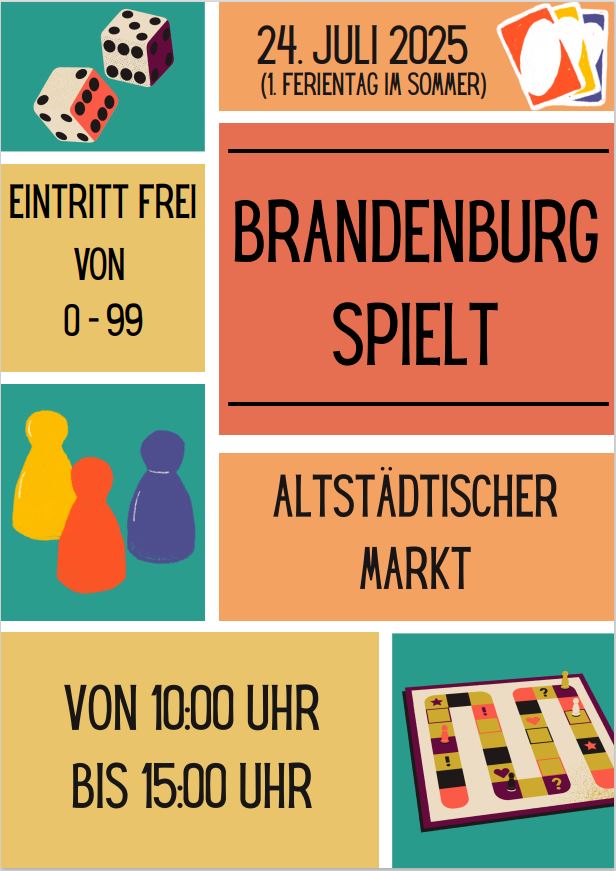 Am ersten Sommerferientag, am 24. Juli (Donnerstag) von 10:00 bis 15:00 Uhr, kann auf dem Altstädtischen Markt ausgiebig gespielt werden. Organisiert von den Erziehungs- und Familienberatungsstellen der Stadt Brandenburg an der Havel wird in Kooperation mit der Fouqué-Bibliothek gegenwärtig die „Brandenburg spielt“-Premiere vorbereitet. Die Teams der Beratungsstellen sorgen für Tische und Stühle, die Bibliothek stellt ihre Spiele zur Verfügung. Jede Menge! Darunter Klassiker wie „Mensch ärgere dich nicht“, Schach, Dame und Backgammon sowie neue Schöpfungen à la „Mino & Tauri“. „Echt jetzt“ und „Fotofish“.