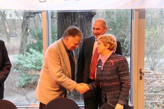 Oberbürgermeisterin Dr. Dietlind Tiemann begrüßt den neuen Chefdirigenten der Brandenburger Symphoniker – Prof. Peter Gülke.