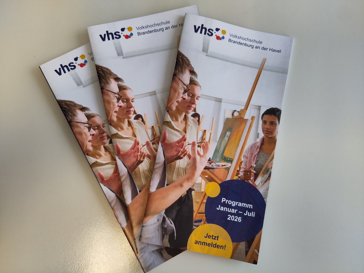 Das neue Programmheft der Volkshochschule Brandenburg an der Havel ist jetzt da. Darin enthalten ist unser vielfältiges Bildungsangebot von Januar bis Juni 2026. Sie finden das Programmheft in unserer Volkshochschule (Upstallstraße 25), den Bibliotheken, der Musikschule, im Stadtmuseum, bei der Tourist-Information und an vielen weiteren Stellen.