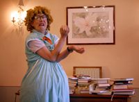 Die Komödiantin und Mime-Künstlerin Constance Debus sorgt für einen turbulenten Wechsel zwischen elektronischem und papiernem Buch und informiert auf ihre direkte Weise, wie die neue Technik zum Lesevergnügen verhilft.