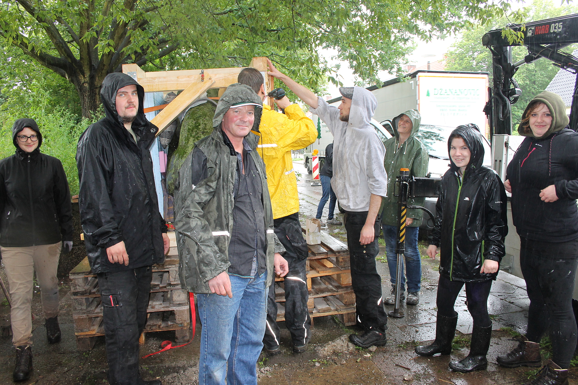 Nach der Bestandsuntersuchung und der Erstellung eines Abbauplanes durch die Studenten konnten am 26.07.2017 der Abbau der Figur und der Abtransport nach Potsdam erfolgen.
