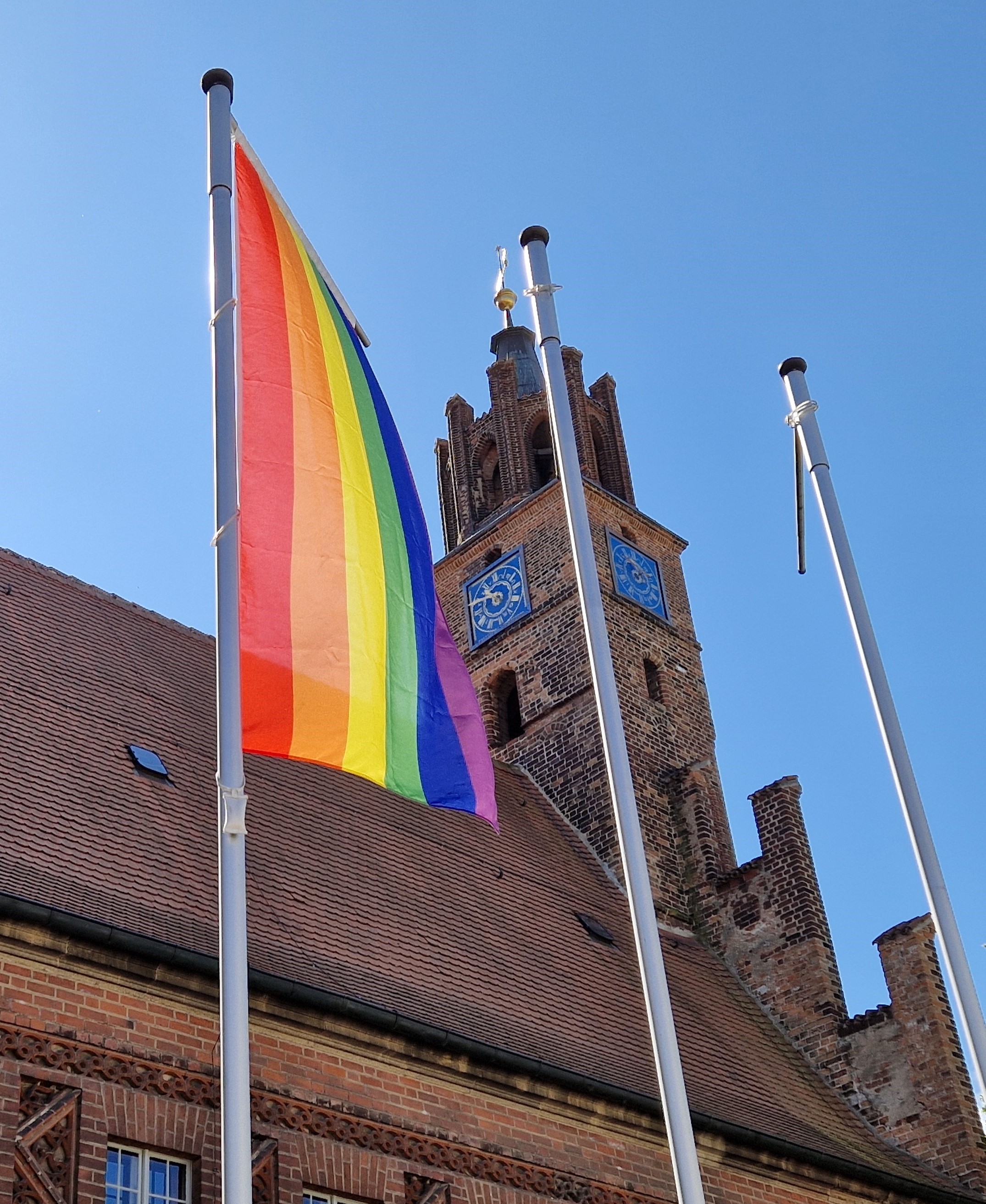 Basierend auf dem Beschluss der Weltgesundheitsorganisation (WHO) vom 17. Mai 1990, Homosexualität von der Liste psychischer Krankheiten zu streichen, wird weltweit seit 2005 daran mit einem Aktionstag erinnert, um auf fortbestehende Diskriminierung aufmerksam zu machen. Seit 2021 gehört Brandenburg an der Havel zu den Städten, in denen Regenbogenfahnen gehisst werden. Und so weht auch 2024 zum Internationalen Tag gegen Homo-, Bi- und Trans*phobie die buntgestreifte Flagge am Rathaus – als sichtbares Zeichen gegen Diskriminierung und Gewalt und für Toleranz.