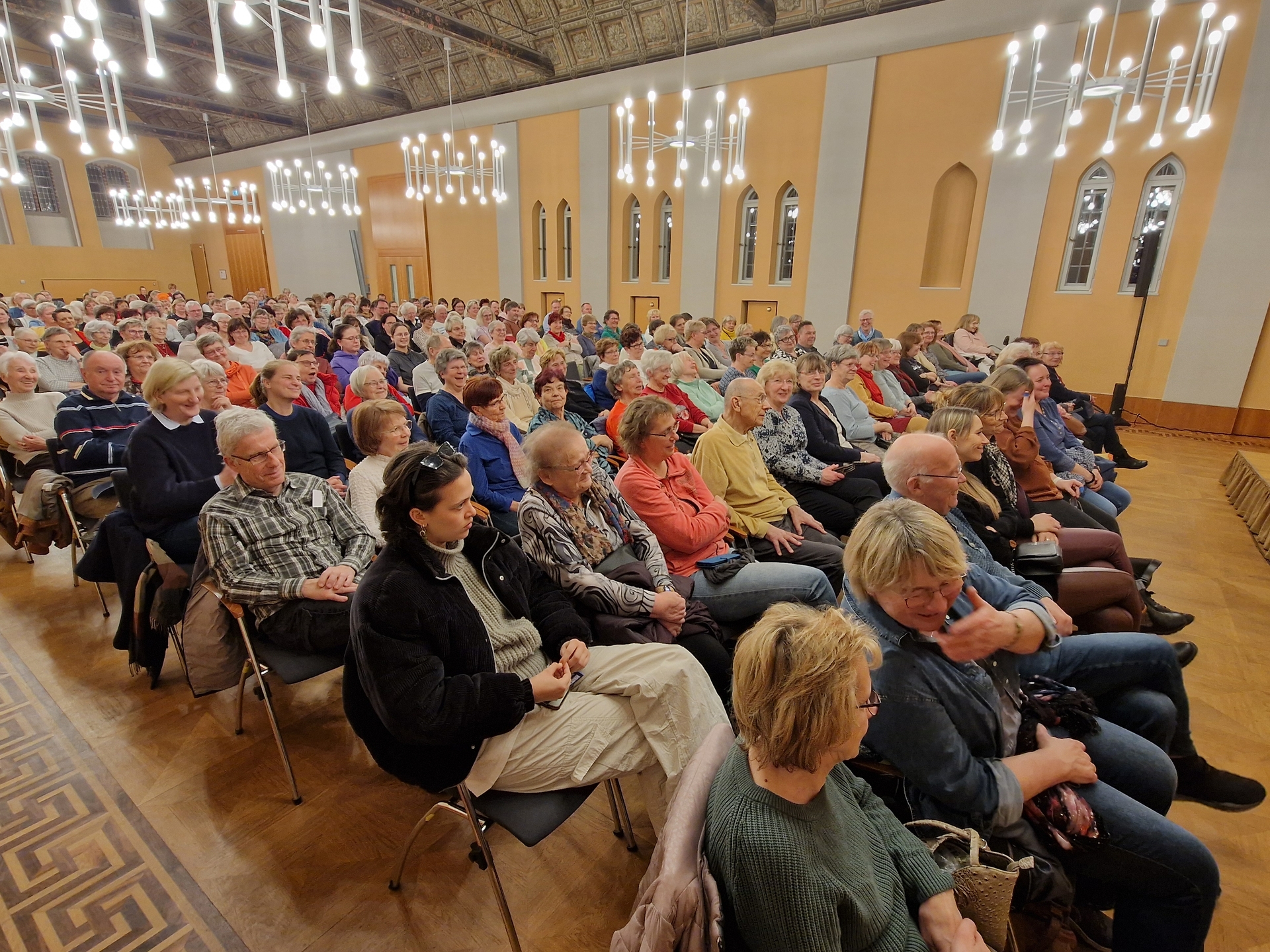 Schon im Vorjahr hatte Twitter-Seniorin Renate Bergmann, grandios verkörpert von Schauspielerin Anke Siefken, mit ihrem Hochzeitsfieber das Publikum im Handumdrehen vereinnahmt. Sie begeisterte im ausverkauften Rolandsaal dermaßen, dass die Fouqué-Bibliothek sie 2024 im Rahmen der 34. Brandenburgischen Frauenwoche(n) erneut buchte – für zwei Veranstaltungen. Die brachten es zusammen auf 530 „Besuchende“, was Renate Bergmann glatt schon wieder verzweifeln ließe. Nicht wegen der tollen Resonanz, sondern wegen des wörtlichen Umgangs mit den „Besuchern“. Das „Gendern“ zählt nicht zu Bergmanns Verbalträumen, die Ü80-Jährige träumt lieber