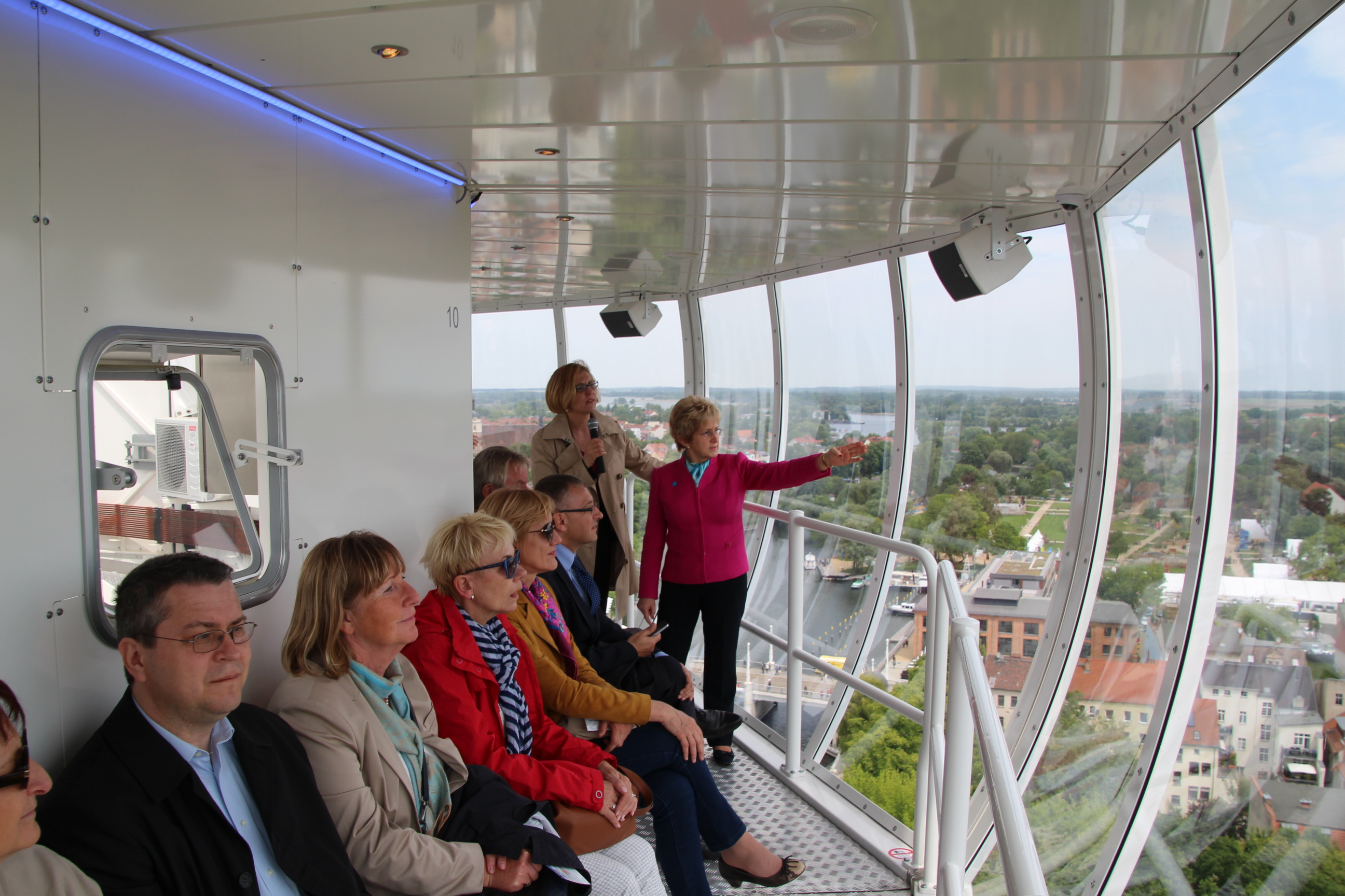Nach einer kurzen Führung durch das Altstädtische Rathaus ging es in die St. Johanniskirche zur Blumenhallenschau. Im Anschluss betrachteten die Gäste die Havelstadt in luftiger Höhe vom BUGA-Skyliner.