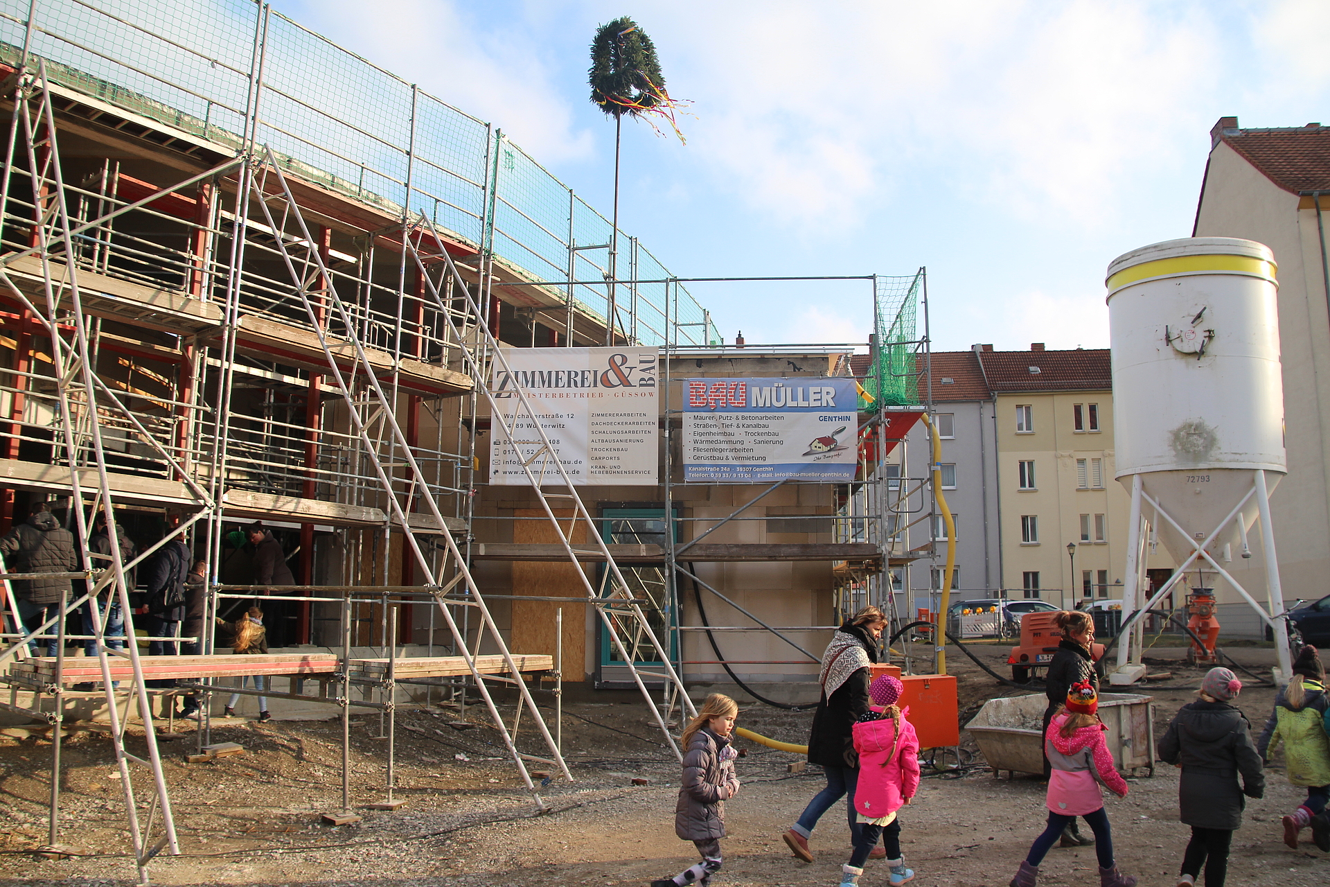 Zum Richtfest des 3,4 Mio. Euro teuren Neubaus der „Kita Perlentaucher“ in der Hausmannstraße erklärt Oberbürgermeister Steffen Scheller: