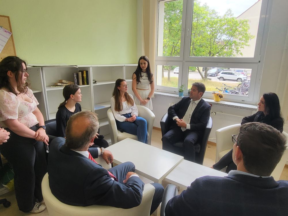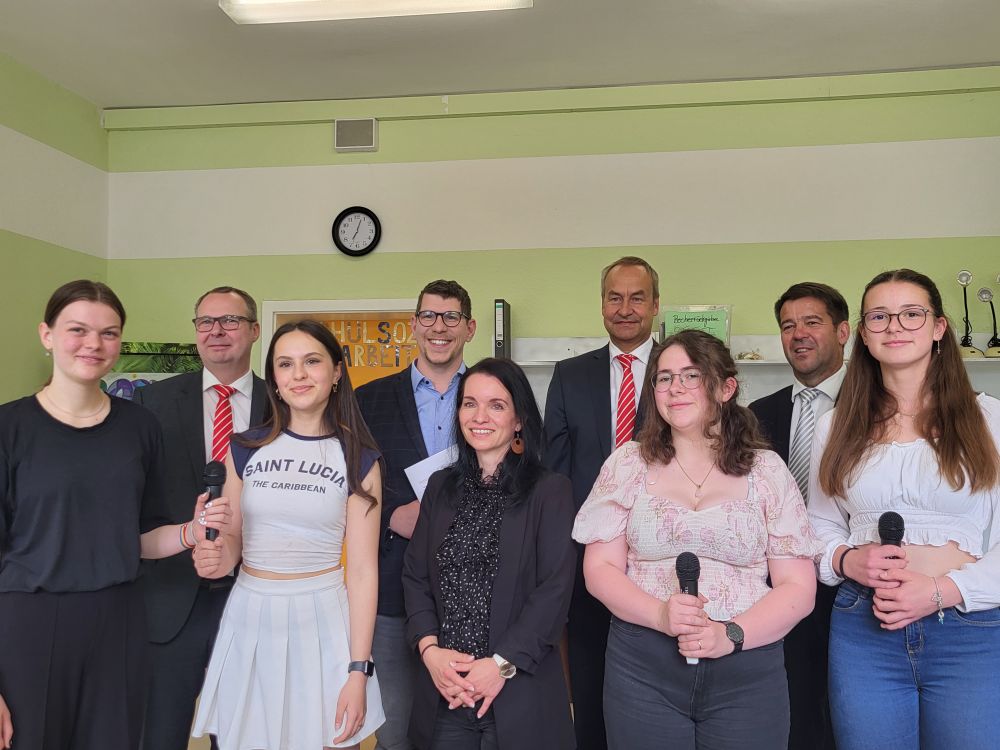 Bei einem Vor-Ort-Termin im Bertolt-Brecht-Gymnasium übergab Andreas Schulz, Vorsitzender des Vorstandes der Mittelbrandenburgischen Sparkasse (MBS), gemeinsam mit Oberbürgermeister Steffen Scheller am Dienstag, 6. Juni 2023, stellvertretend für 26 Vereine, Institutionen und Organisationen in Brandenburg an der Havel Spendenzusagen in Höhe von insgesamt rund 78.000 Euro für verschiedene Projekte.