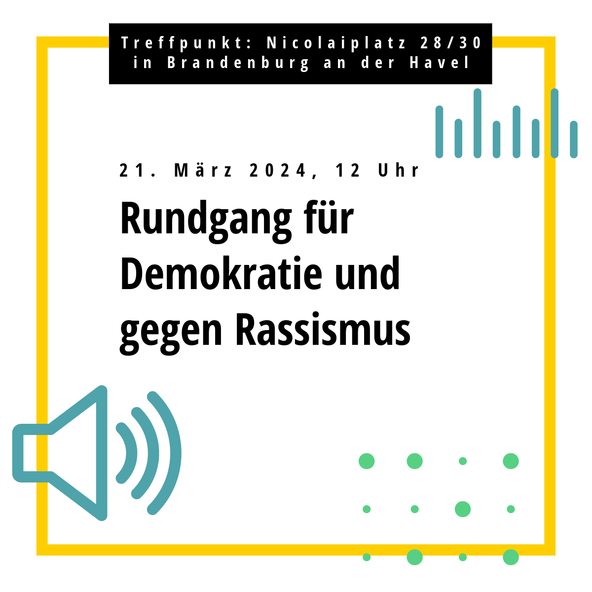 Die Initiative des Deutschen Städtetags und der Stiftung für die Internationalen Wochen gegen Rassismus wird in Brandenburg an der Havel aufgegriffen von der Koordinierungsgruppe für Demokratie und Toleranz, eine parteiübergreifende Initiative, die schon vor einigen Jahren von der Stadtverordnetenversammlung ins Leben gerufen wurde. Der geplante Rundgang soll deutlich machen, dass Menschenfeindlichkeit, Rassismus und Antisemitismus keinen Platz in unserer Gesellschaft haben