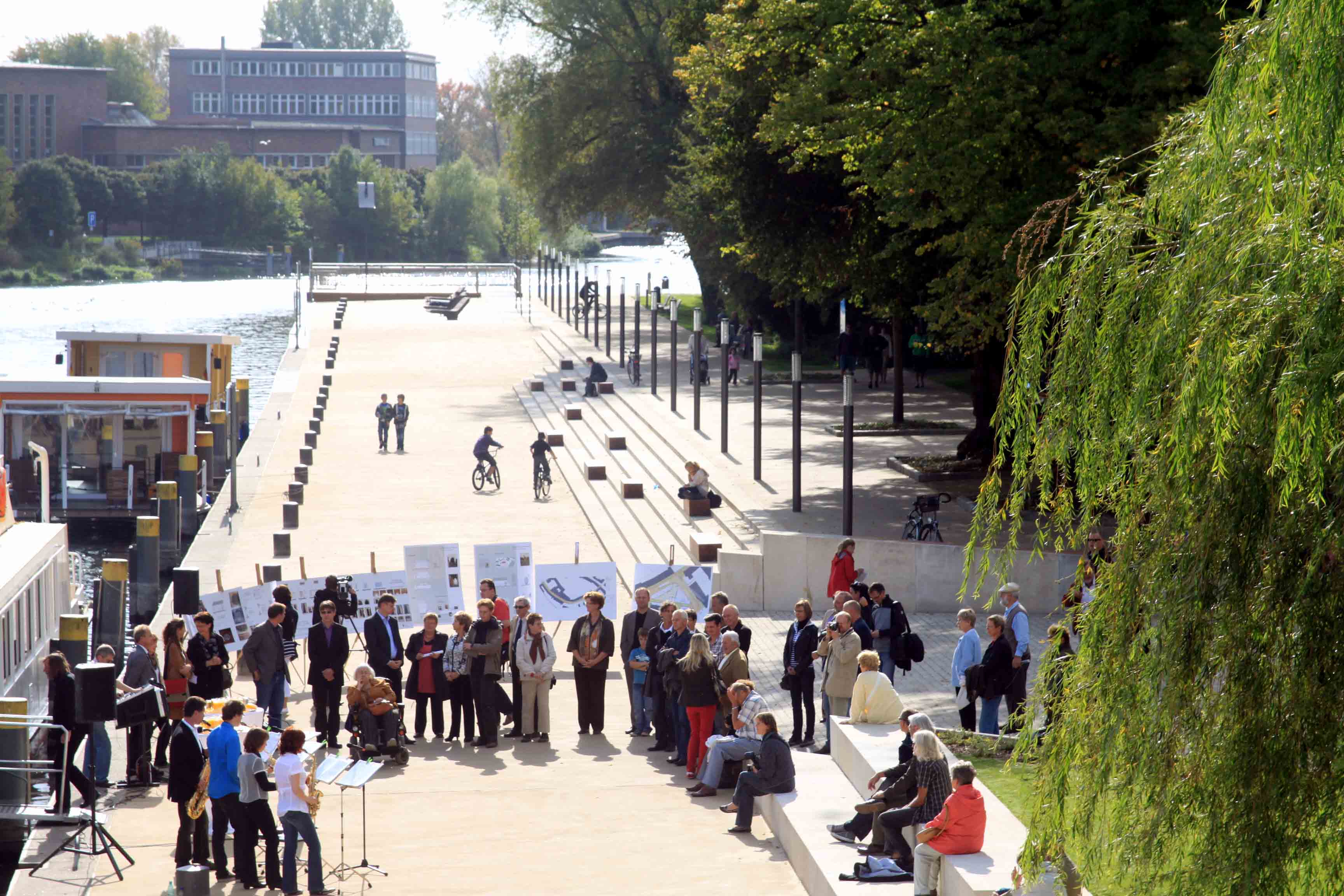 Oberbürgermeistrin Dr. Dietlind Tiemann dankte in ihrer Rede den am Bauvorhaben beteiligten Firmen und Institutionen und stellte fest: „Die Aufwertung des Salzhofufers ist gelungen!“