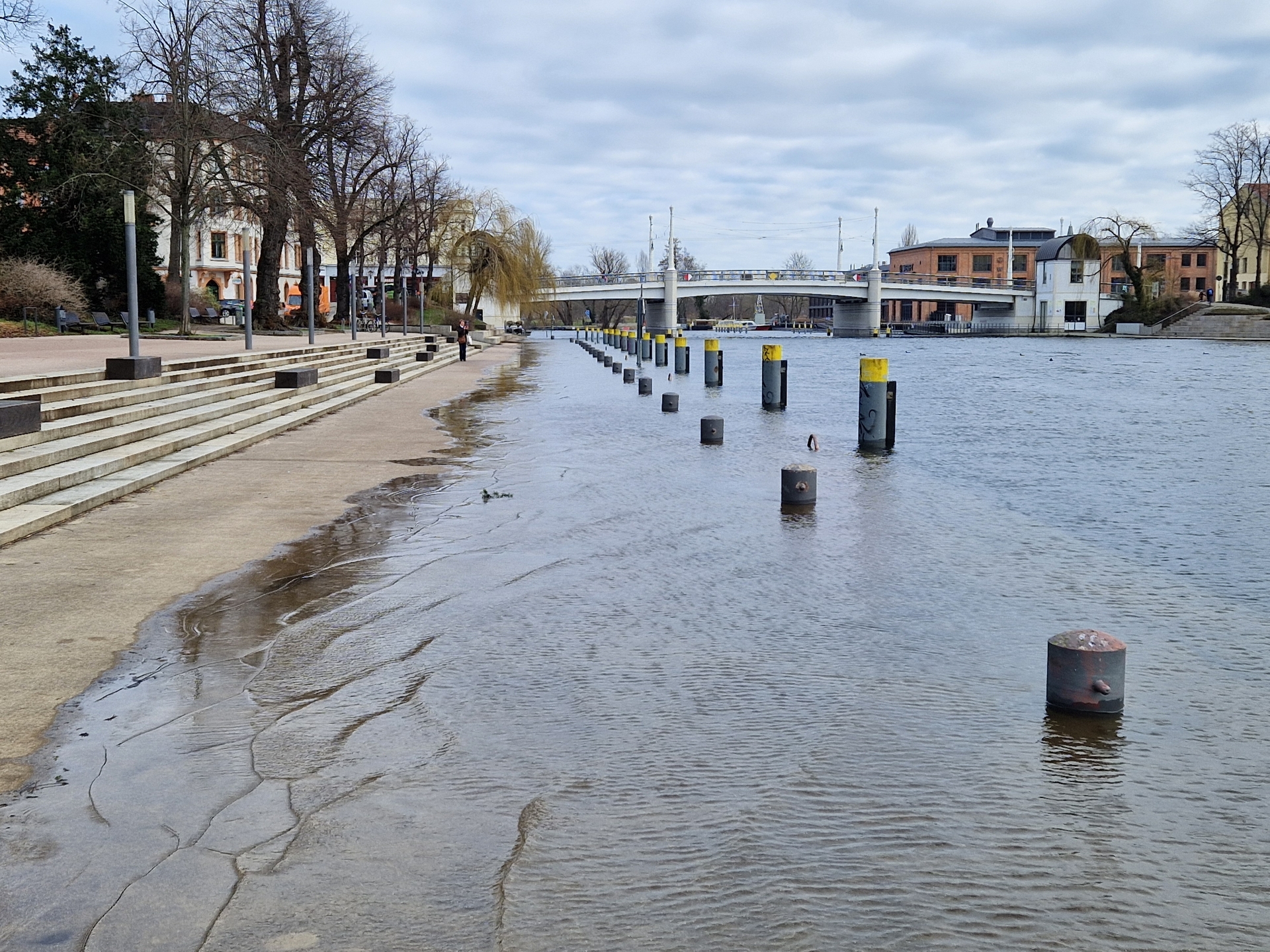 Mitarbeiter des Bauhofs der Stadt Brandenburg an der Havel haben am Dienstag im Laufe des Vormittags den Uferbereich am Salzhof abgesperrt. Das Wasser war deutlich über die Ufer getreten und somit die Uferkante nicht mehr einsehbar. Der Grund ist www.pegelonline.wsv.de zu entnehmen: