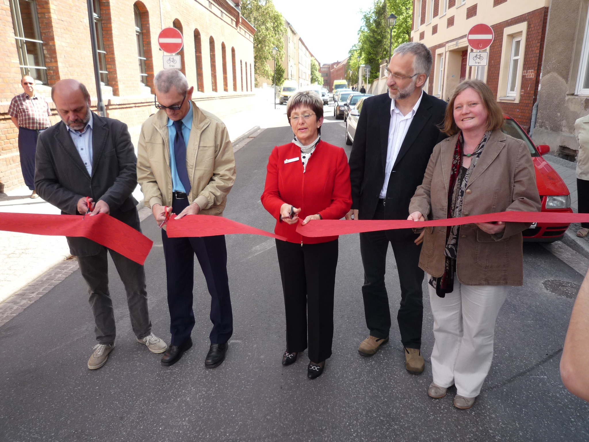 Nachdem die Kleine Gartenstraße mit URBAN-Mitteln bereits umgestaltet wurde, wurde am Mittwoch, 26.05.2010, nach über einjähriger Bauzeit die feierliche Eröffnung der Kirchhofstraße – gefördert über das Programm Stadtumbau Ost, durch Oberbürgermeisterin Dr. Dietlind Tiemann und den beteiligten Baufirmen vollzogen.
