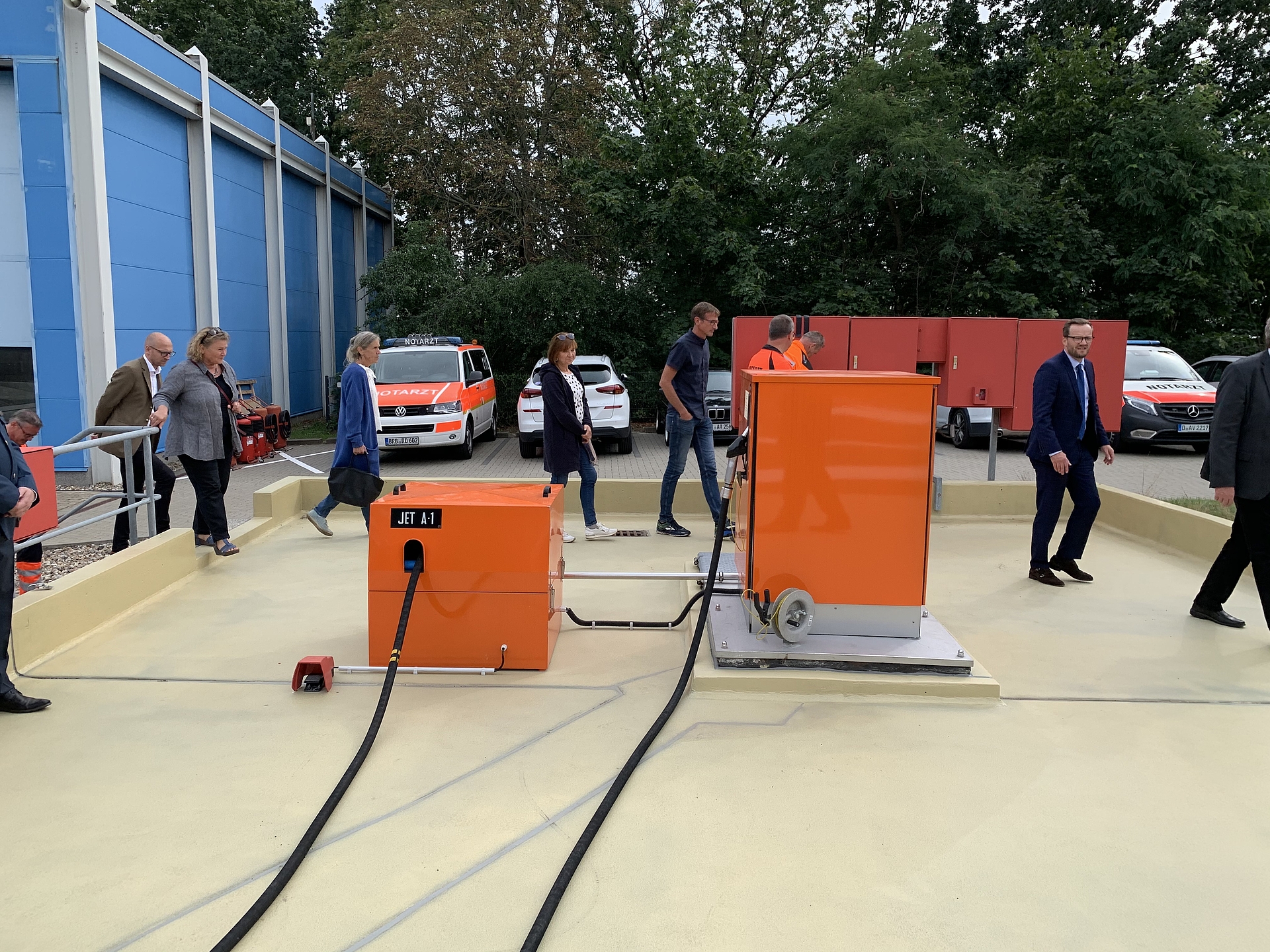 Auf dem Marienberg wurde am Dienstag, 01.09.2020, die grundhaft ausgebaute Luftrettungsstation feierlich eingeweiht. Nach knapp dreimonatiger Bauzeit können sich Feuerwehrchef Mathias Bialek, Rettungsdienstleiter Dr. Martin Hochstatter und das Luftrettungsteam über eine neue Landefläche mit kerosinbeständigem Gussasphalt inkl. Markierungsarbeiten, eine neue abgedichtete Tankanlagenfläche, neue Befeuerung, neue Elektrik, einem sanierten Dach, einen versiegelten Hangarboden, neue Computertechnik und Glasfaser freuen. Die Kosten belaufen sich auf rund 630.000 EUR.