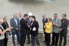Bauausführende Firma SKE Facility Management GmbH (SKE) beginnt die Sanierungsarbeiten und erhält symbolisch die Schlüssel der Klingenbergschule, der Luckenberger Schule, der Oberschule Nord und der Wilhelm-Busch-Schule.