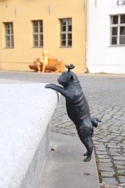 Der Brunnen vor dem Altstädtischen Rathaus präsentierte sich zum Wochenbeginn als Schaumbad. Unbekannte hatten das Brunnenwasser mit Spül- oder Waschmittel angereichert. Leider konnte dies auch der Hüter des Brunnens, der Waldmops, nicht verhindern.