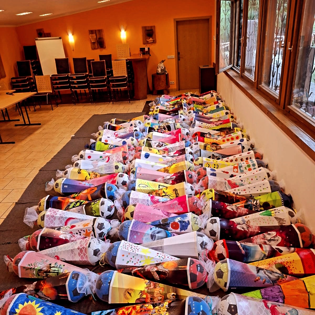 Der Inhalt der Schultüten war vielfältig und praktisch zusammengestellt: Ein Farbmalkasten, Pinselset, Bunt- und Bleistifte, Schreibhefte, zwei Spielzeuge, ein Ball, Stundenplan, Kreide, Schlüsselanhänger, Aufkleber und Süßigkeiten – alles, was für einen gelungenen Schulstart notwendig ist.