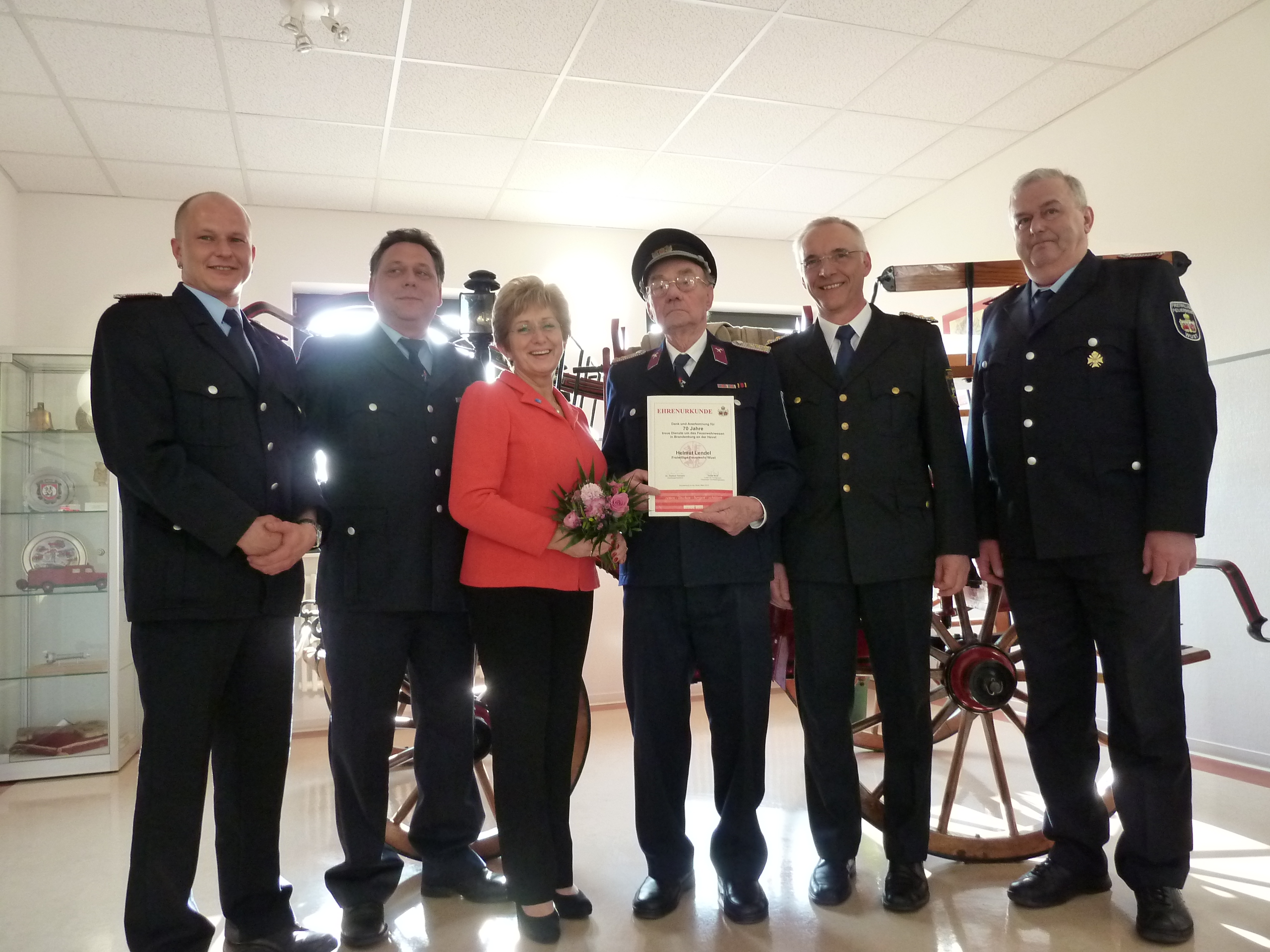 Ein besonders seltenes Jubiläum feiert in diesem Jahr Helmut Lendel aus dem Brandenburger Ortsteil Wust. Der 85-jährige ist bereits seit sieben Jahrzehnten Mitglied in der Freiwilligen Feuerwehr. Aus diesem Anlass luden Oberbürgermeisterin Dr. Dietlind Tiemann und Feuerwehrchef Detlef Wolf den Jubilar am Freitag, 14.03.2014, in die Feuer- und Rettungswache der Stadt ein.