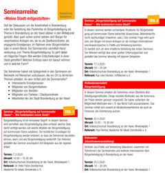 Die Seminarreihe vermittelt Handwerkszeug zum Thema Bürgerbeteiligung. Es geht dabei um folgende Fragen: Wie werden Entscheidungen in einer Stadt getroffen? Welchen Einfluss kann ich darauf nehmen und in welcher Form?