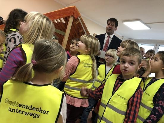 „Mir ist wichtig, dass die kleinsten Stadtentdecker gut sichtbar und sicher in unserer Stadt unterwegs sind. Mit den neuen Westen fallen sie richtig gut auf.“ freut sich Oberbürgermeister Steffen Scheller.