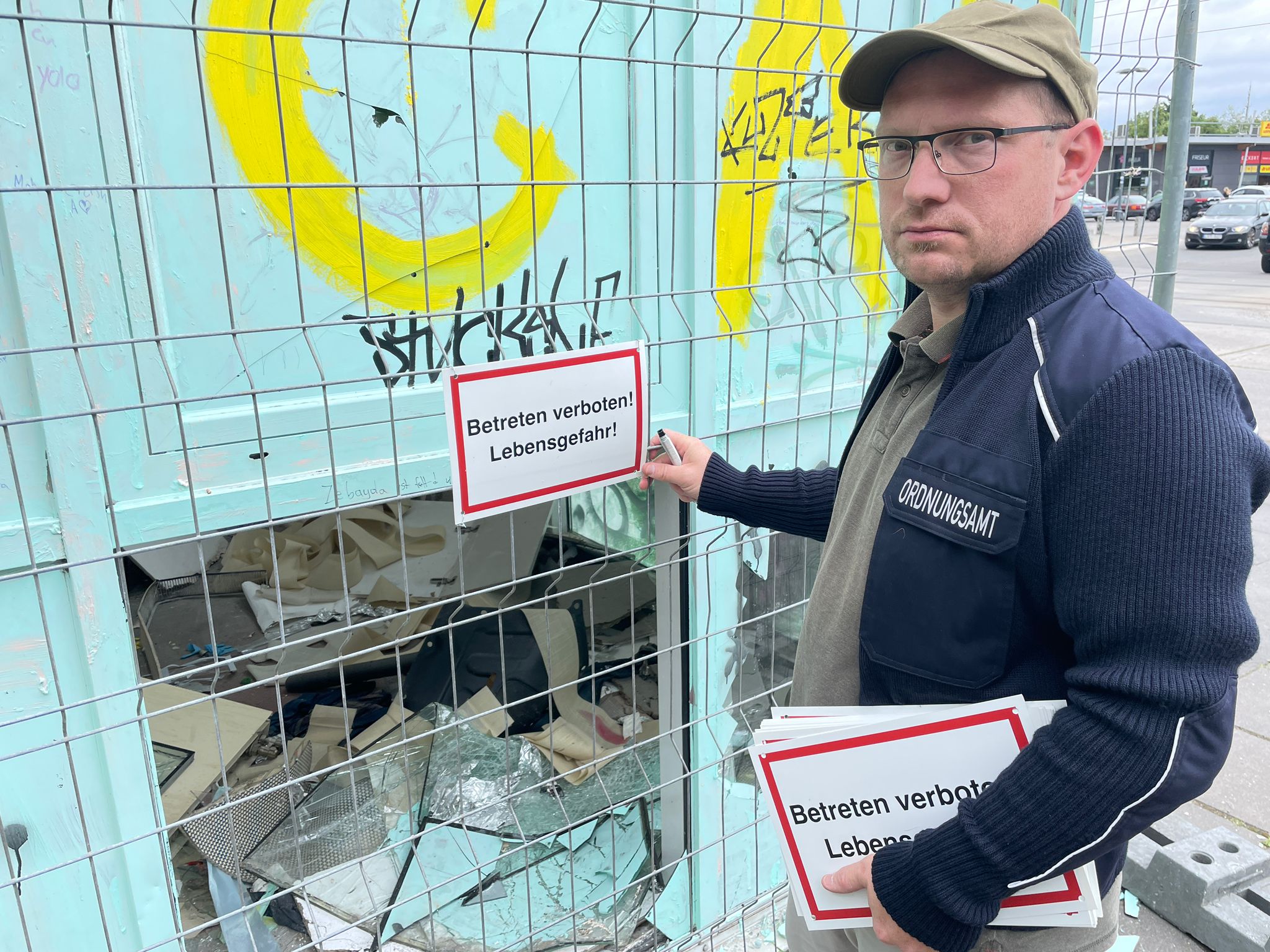 Das führte bereits Donnerstagmittag zu sichtbaren Ergebnissen. Mitarbeiter des Ordnungsamtes und des Bauhofs sperrten die EKZ-Zugänge mit Bauzäunen und „Betreten verboten“-Schildern. So soll weiterem Vandalismus im Gebäude und möglichen Gefahren vorgebeugt werden -, bis die Eigentumsfrage geklärt ist.