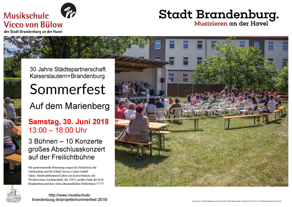 Anlässlich des Jubiläums der 30-jährigen Städtepartnerschaft mit Kaiserslautern wird auf dem Sommerfest in diesem Jahr zugleich die 28-jährige intensive Zusammenarbeit der Musikschulen beider Städte gefeiert.