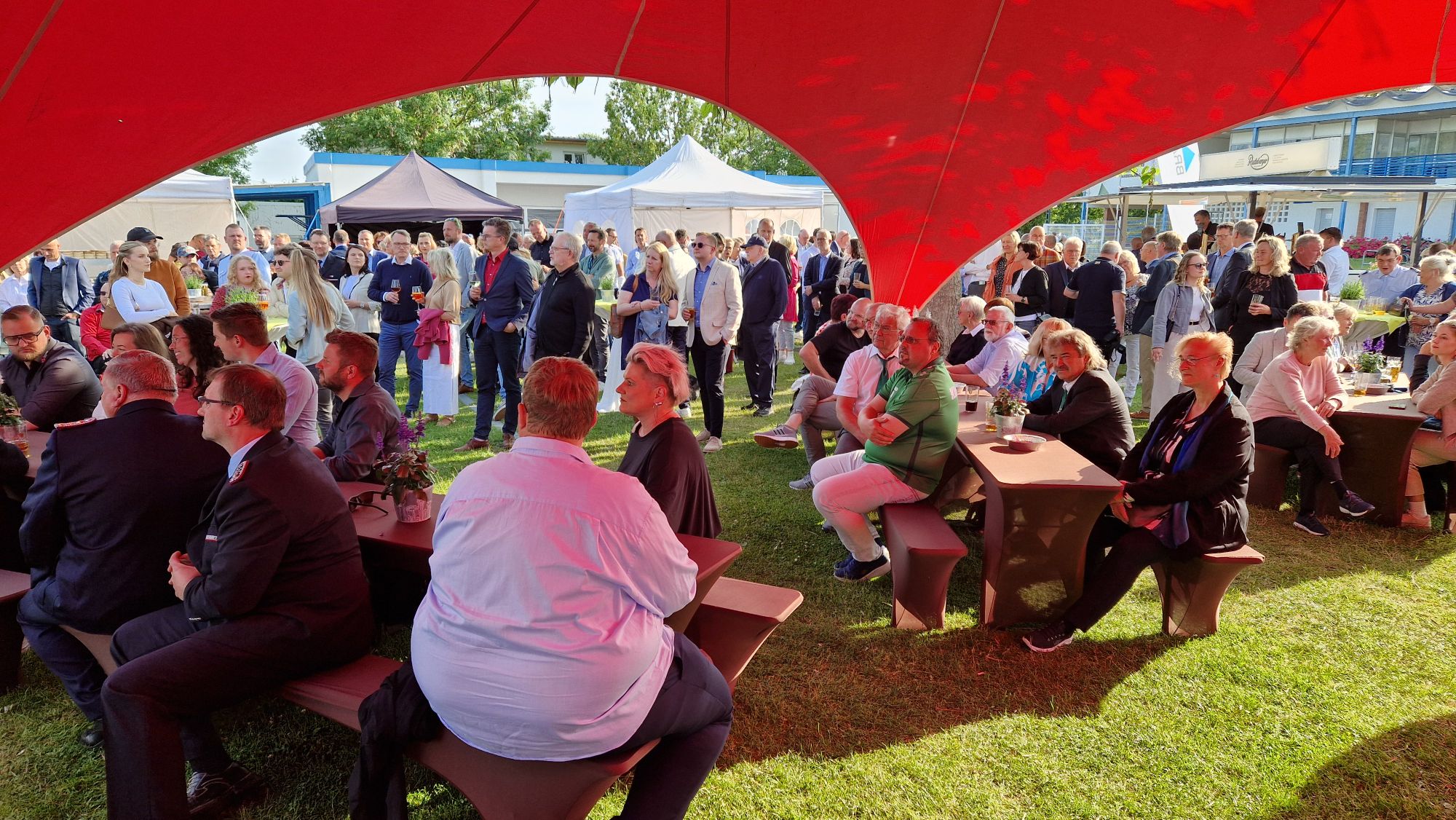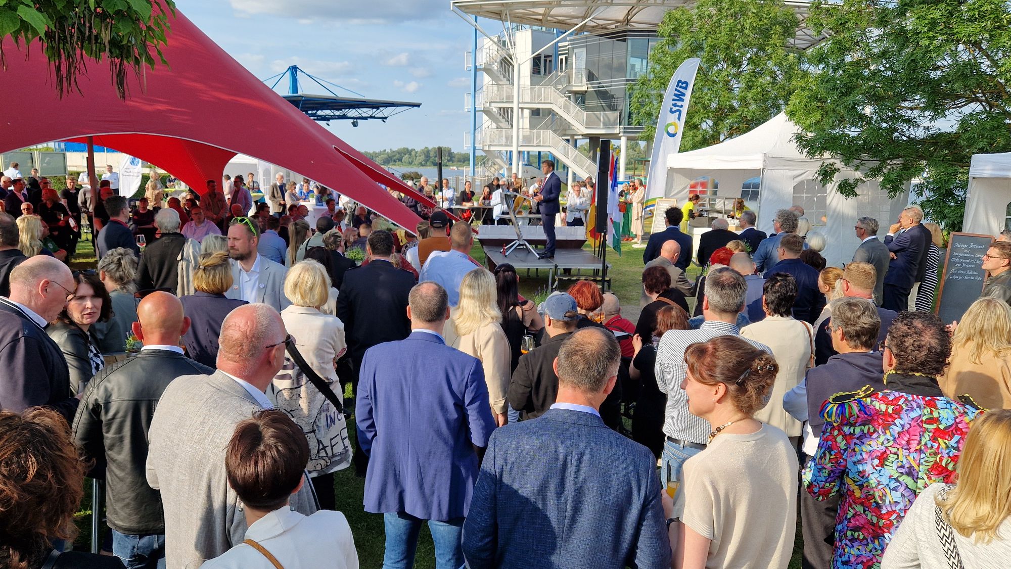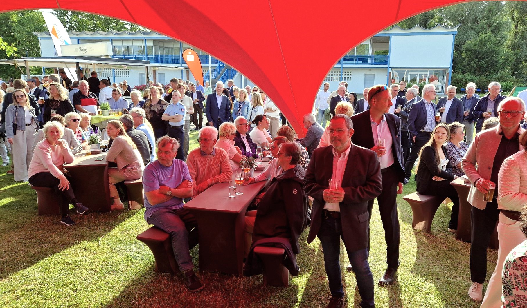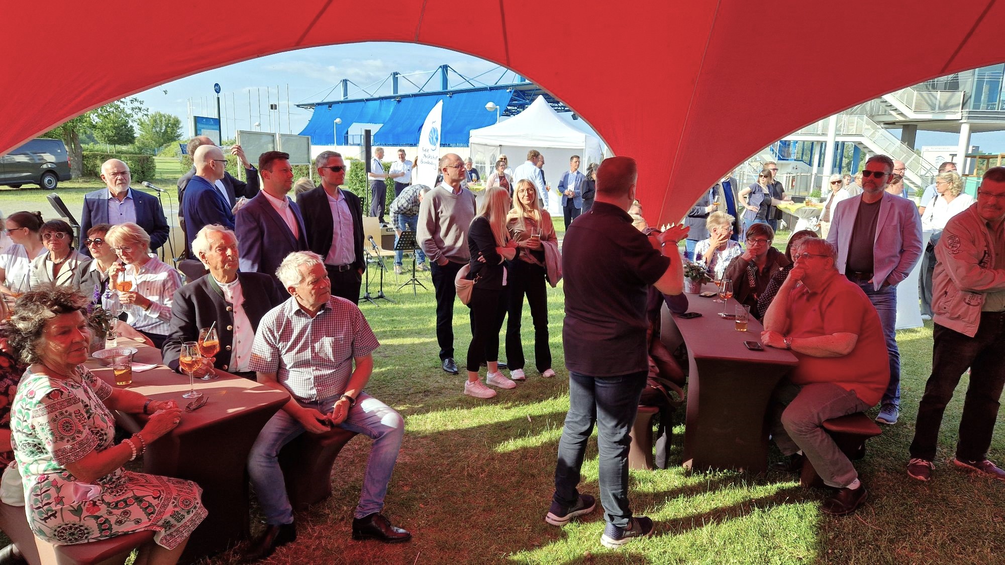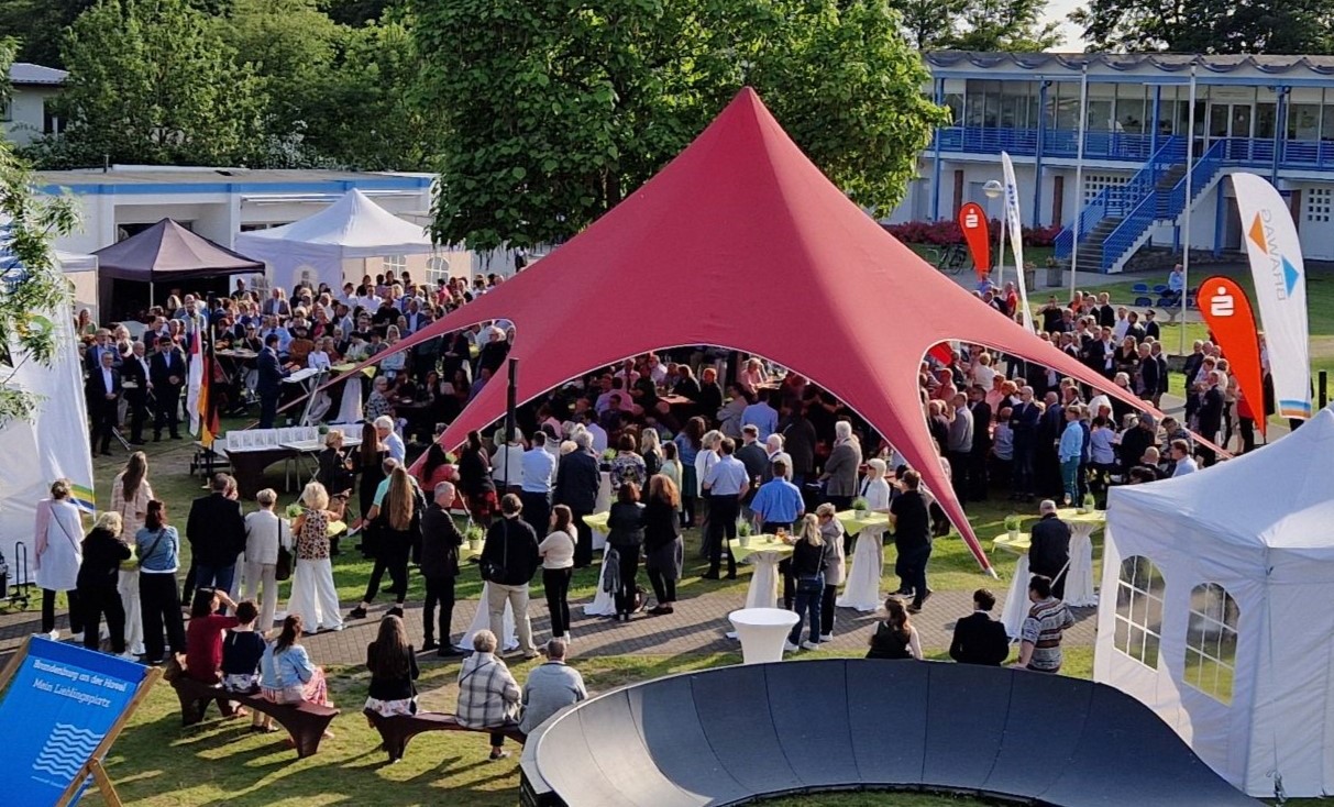 Nach erstaunlich kühlen Juni-Tagen haben Oberbürgermeister Steffen Scheller und Walter Paaschen als Vorsitzender der Stadtverordnetenversammlung bei strahlend blauem Himmel über 400 Gäste zum städtischen Sommerempfang an der Regattastrecke begrüßen können. Neben MBJS-Staatssekretär Hendrik Fischer und OLG-Präsident Matthias Deller waren auch der MBS-Vorstandsvorsitzende Andreas Schulz, Sport-Stars wie Sebastian Brendel und eine kleine Delegation aus Brandenburgs dänischer Partnerstadt Ballerup dabei, ebenso Vertreterinnen und Vertreter aus Wirtschaft, Verwaltung, Beiräten, Vereinen und Verbänden.