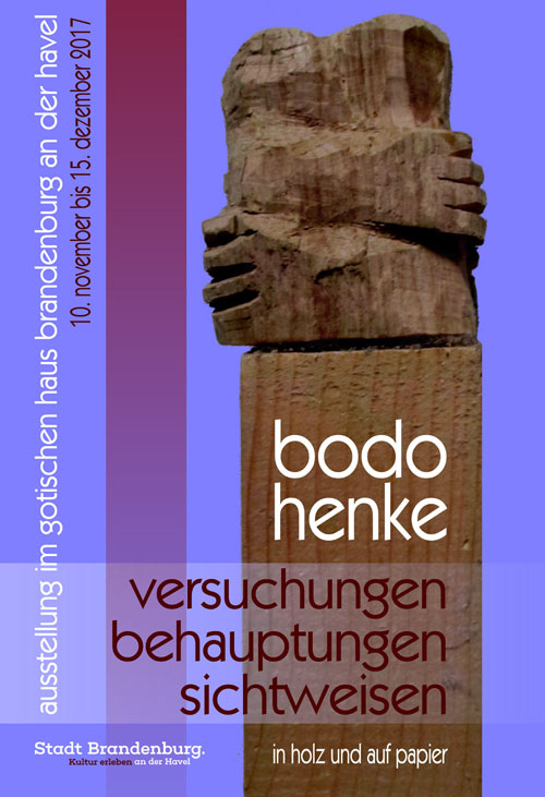 Seit dem 10. November kann Bodo Henkes Ausstellung „ versuchungen- behauptungen- sichtweisen in holz und auf papier“ kostenfrei im Gotischen Haus, Johanniskirchplatz 4 in 14770 Brandenburg an der Havel besucht werden.