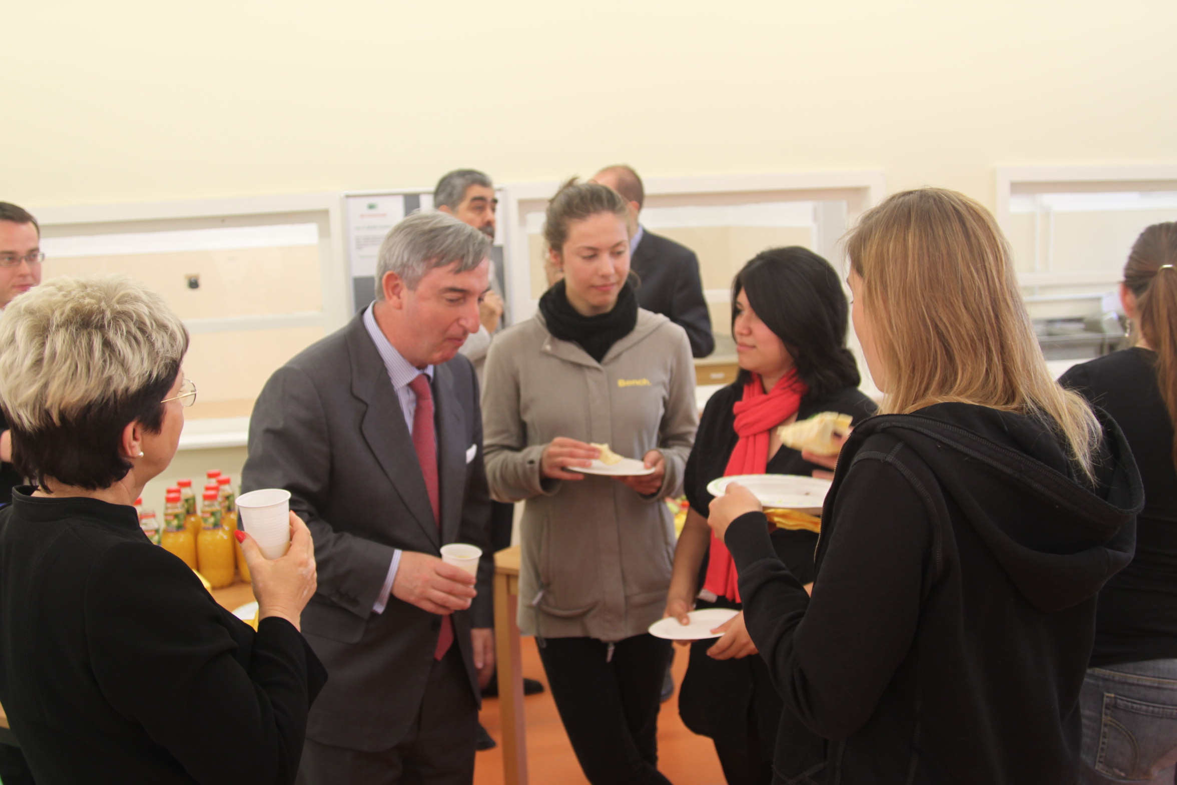 Die angehenden Abiturienten vom Bertolt-Brecht- und von Saldern-Gymnasium nutzten den hochrangigen Besuch um Fragen zur Thematik „Spaniens Rolle in Europa“ zu stellen. So ging es um die Stabilität des Euros, die Reformen im Land und um die wirtschaftliche Zukunft Spaniens. Trotz engem Zeitplan wurden alle Fragen ausführlich beantwortet. Es bestand sogar die Möglichkeit beim Mittagsimbiss direkt mit dem Botschafter die Diskussion fortzusetzen.