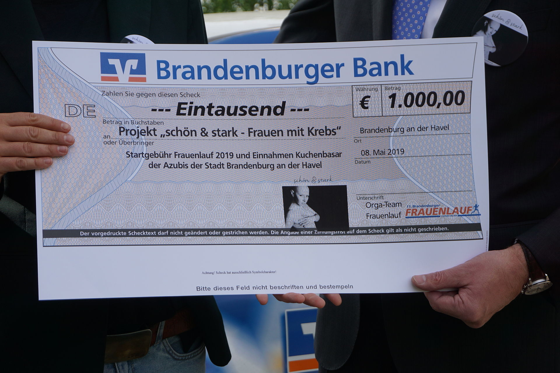 Bei der Summe handelt es sich um die Erlöse von Einnahmen aus dem Kuchenbasar und der Teilnahmegebühr des 11. Brandenburgischen Frauenlaufes vom 30.März 2019 auf dem Marienberg und weiteren Sponsoren, wie der Brandenburger Bank, der Neuen Linie und des Bistros des Marienbades Brandenburg.