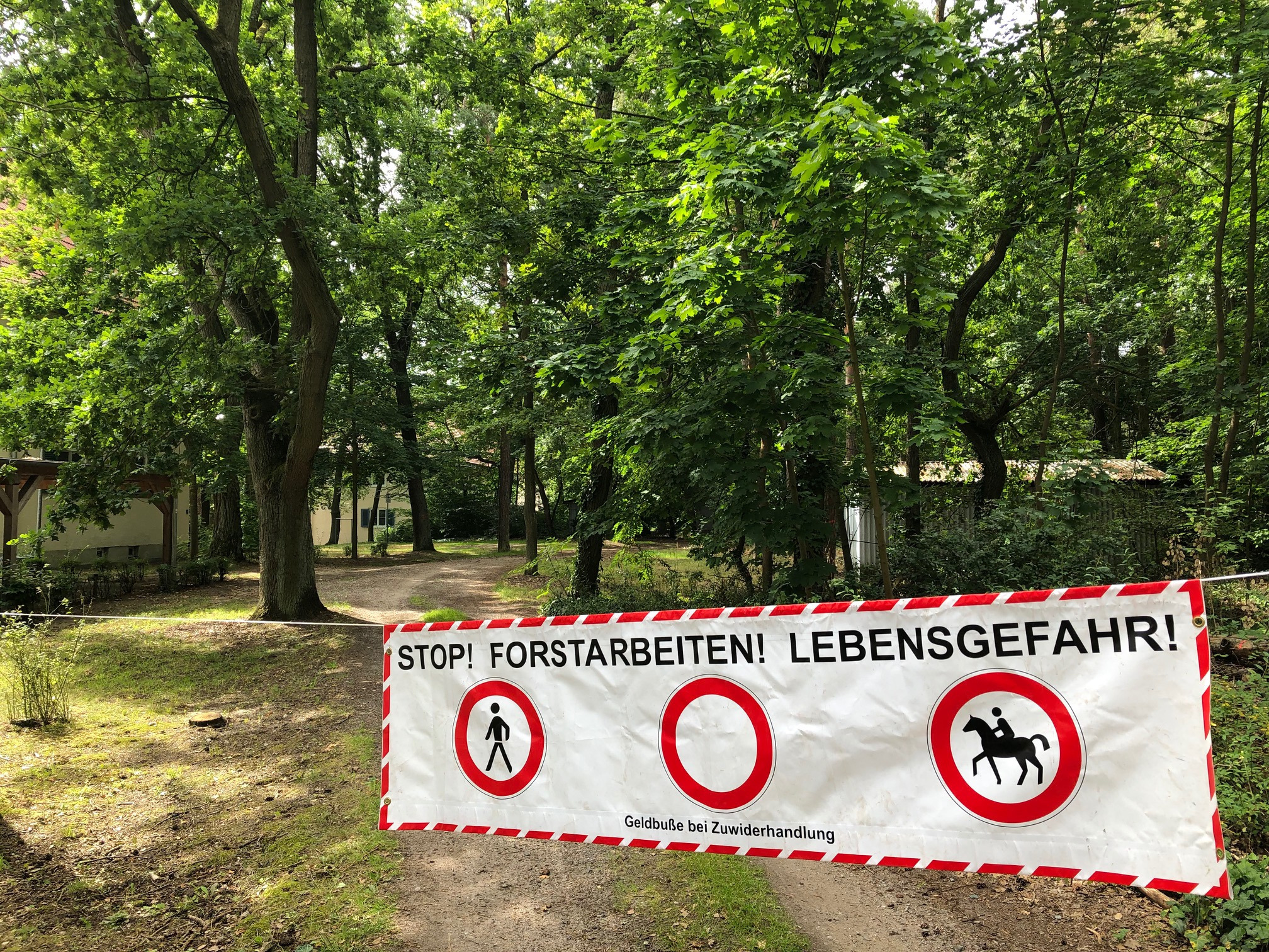 Der Forstbetrieb der Stadt Brandenburg bittet die Bürger sich an die Absperrungen zu halten und das Waldgebiet, jeweils zwischen 7 und 18 Uhr, nicht zu betreten. Während der Fällarbeiten besteht Gefahr für Leib und Leben.