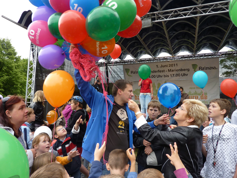 Im Beisein zahlreicher Kinder und Erwachsener gab Oberbürgermeisterin Dr. Dietlind Tiemann am 01.06.2011 um 10:00 Uhr auf dem Marienberg den Startschuss für das große Kinder- und Familienfest, das in Brandenburg an der Havel traditionell am Internationalen Kindertag gefeiert wird. In ihren kurzen Begrüßungsworten dankte sie dem äußerst engagierten Organisationsteam um Veranstalter Daniel Güttler sowie allen Helfern, Unterstützern und Mitwirkenden, die nun schon zum achten Mal ein umfangreiches und vielfältiges Programm voller Spiel, Spaß und Unterhaltung auf die Beine gestellt haben.