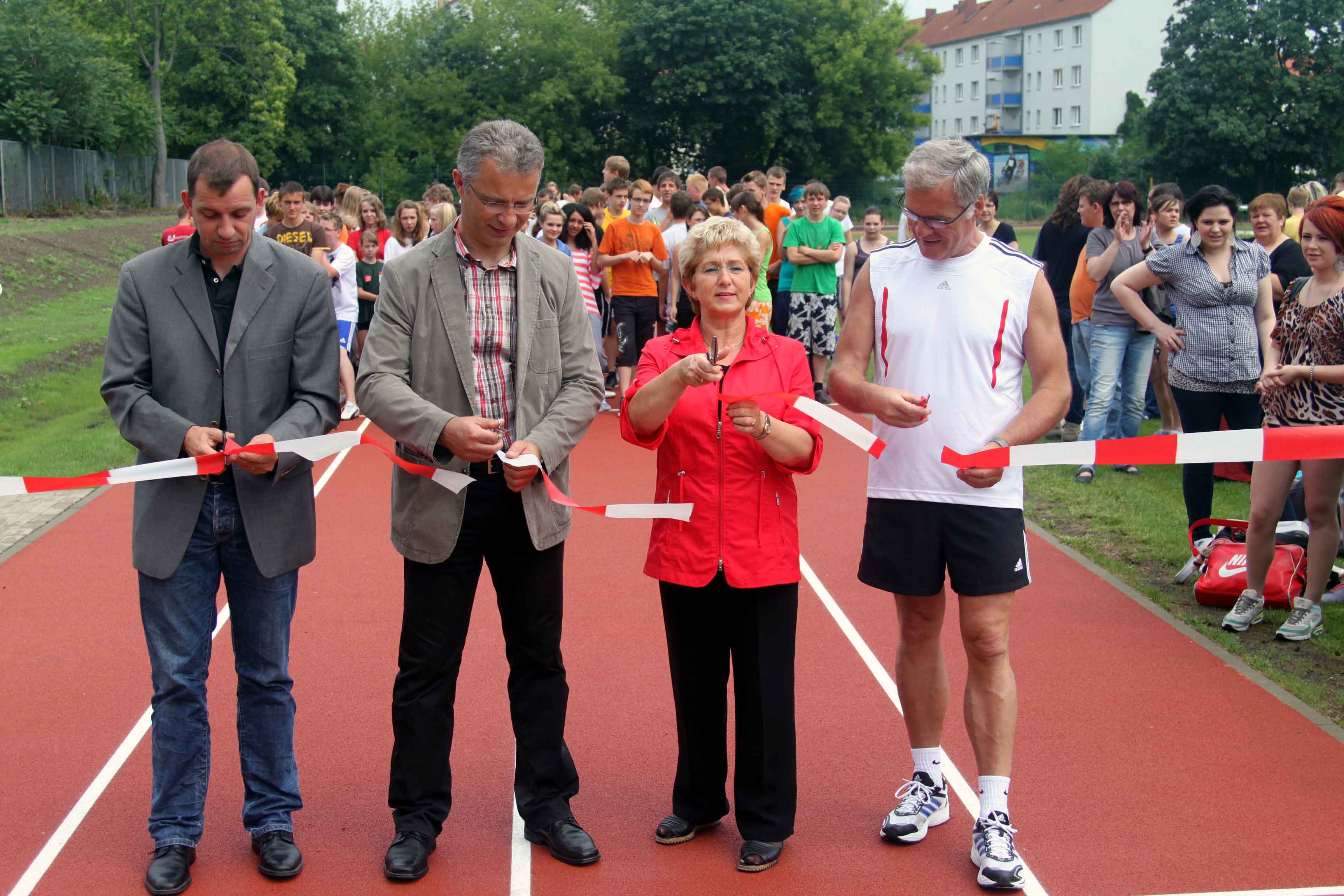 Am Mittwoch, 8. Juni 2011, wurden die neugestalteten Spiel- und Sportanlagen der Oberschule Nord von Oberbürgermeisterin Dr. Dietlind Tiemann, Schulleiter Ulrich Neumann und Franz Beusch, Landschaftsarchitekt und Planer, feierlich ihrer Bestimmung übergeben.