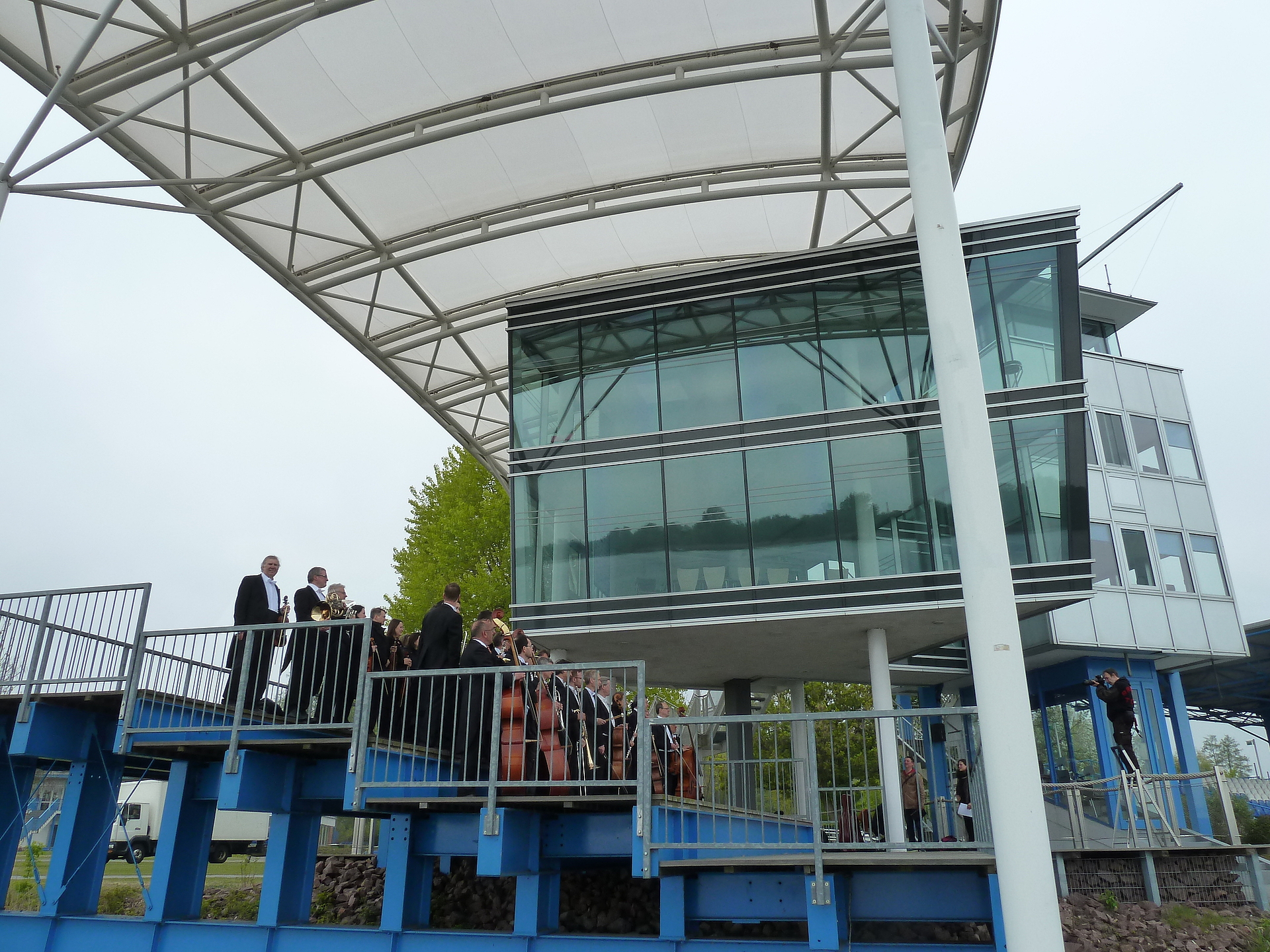 Da, wo sonst legere Trainingsanzüge und Sportbekleidung vorherrschend sind, waren am Vormittag des 03.05.2017 schon von Weitem ungewöhnlich viele Frauen und Männer in schwarzen Kleidern, Anzügen und Smokings zu sehen. Bei näherer Betrachtung stellte sich heraus, dass es sich um die Musikerinnen und Musiker der Brandenburger Symphoniker handelte, die zum Ufer des Beetzsees gekommen waren, um hier Fotos für das neue Spielplanheft zu machen. Im Jahr des 200. Geburtstages des Brandenburger Theaters lautet das Motto „Unser Orchester, unsere Stadt“ bzw. „Unser Theater, unsere Stadt“. Da die Regattastrecke seit einigen Jahren im Zusammenhang mit den beim Publikum äußerst beliebten „Brandenburger Wassermusiken“ zu den Spielorten der Symphoniker zählt, lag es nahe, auch hier ein paar interessante Fotos mit den Musikerinnen und Musikern zu „schießen“.