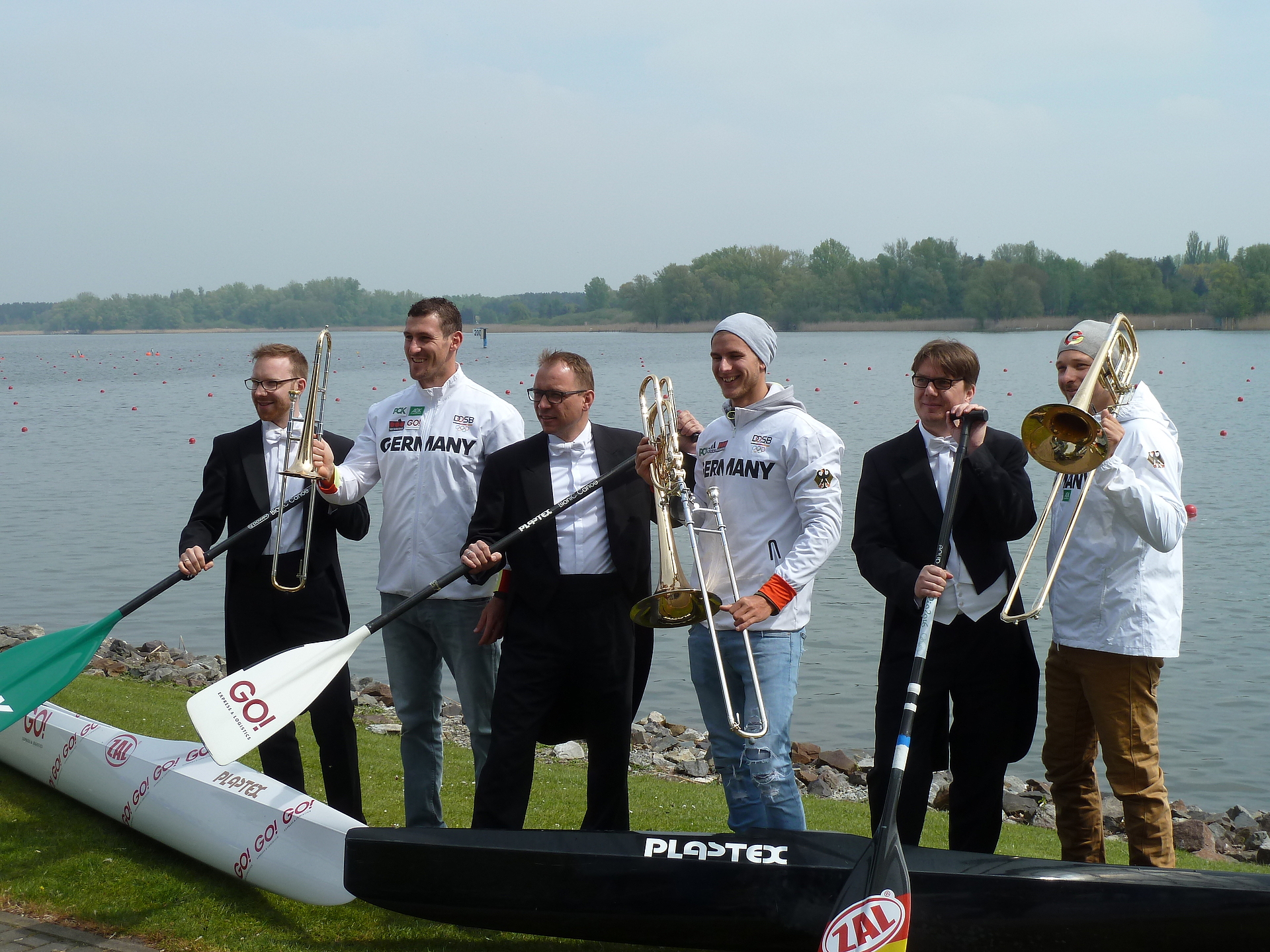 Nach dem Fotoshooting waren sich alle Beteiligten einig: Diese spontan entstandene Aktion hat allen Spaß gemacht und die auf diese Weise entstandenen freundschaftlichen Beziehungen zwischen den Sportlern und Musikern sollte unbedingt vertieft werden. Vielleicht entdeckt man ja Sebastian Brendel und Co. Ende Juli unter den Besuchern der diesjährigen „Brandenburger Wassermusiken“ oder sieht einige Musikerinnen und Musiker bei einer Regatta auf der Zuschauertribüne wieder.
